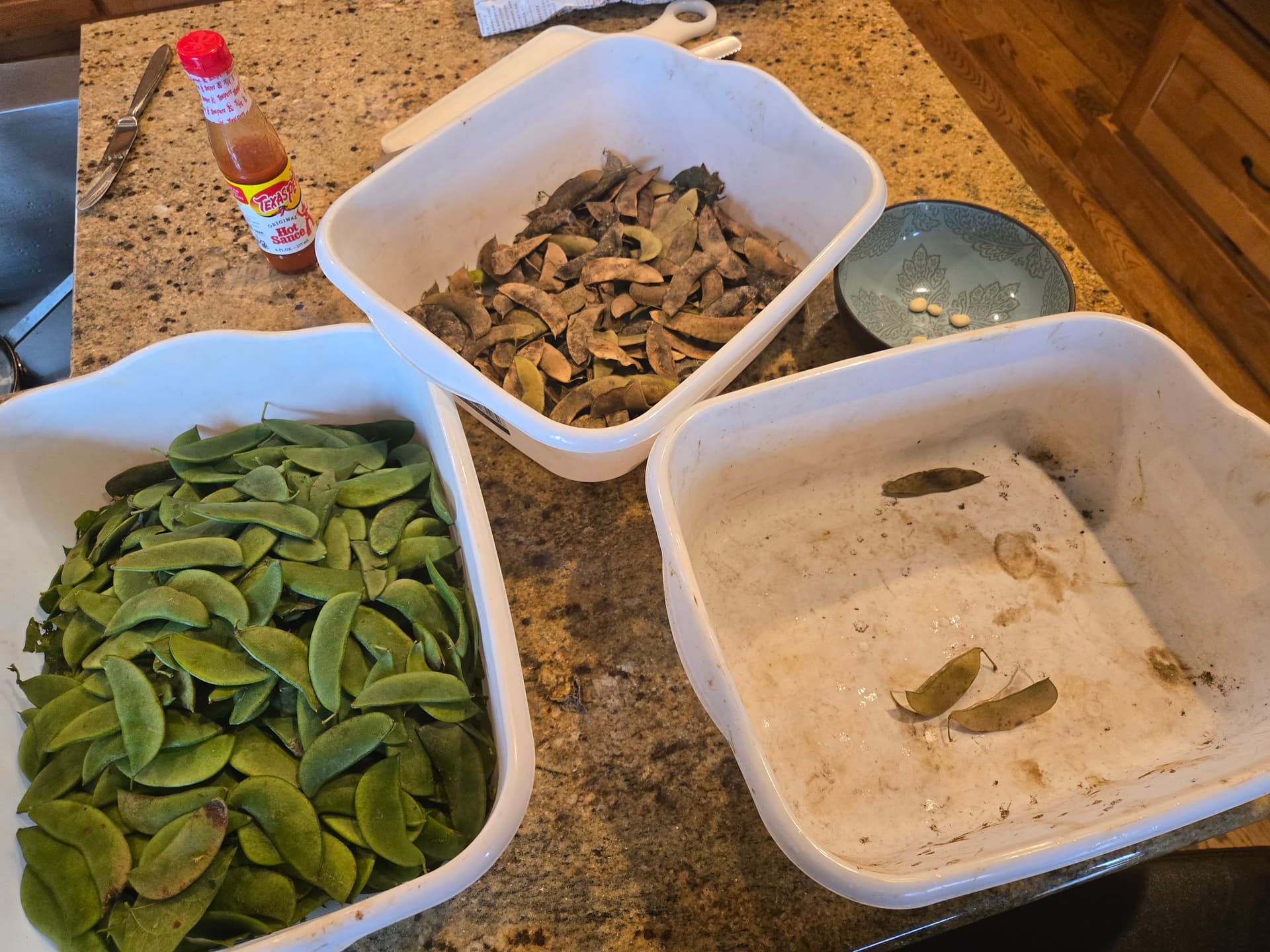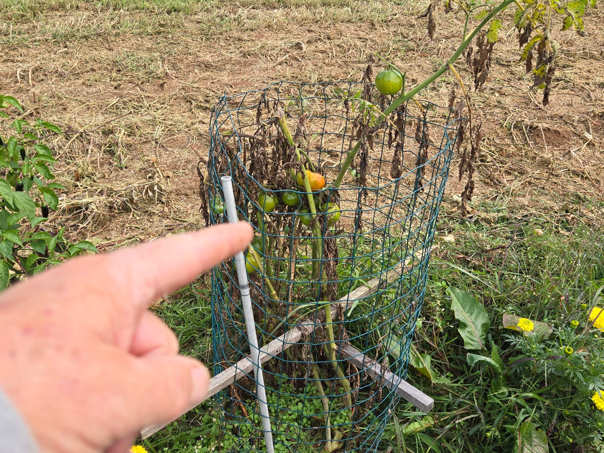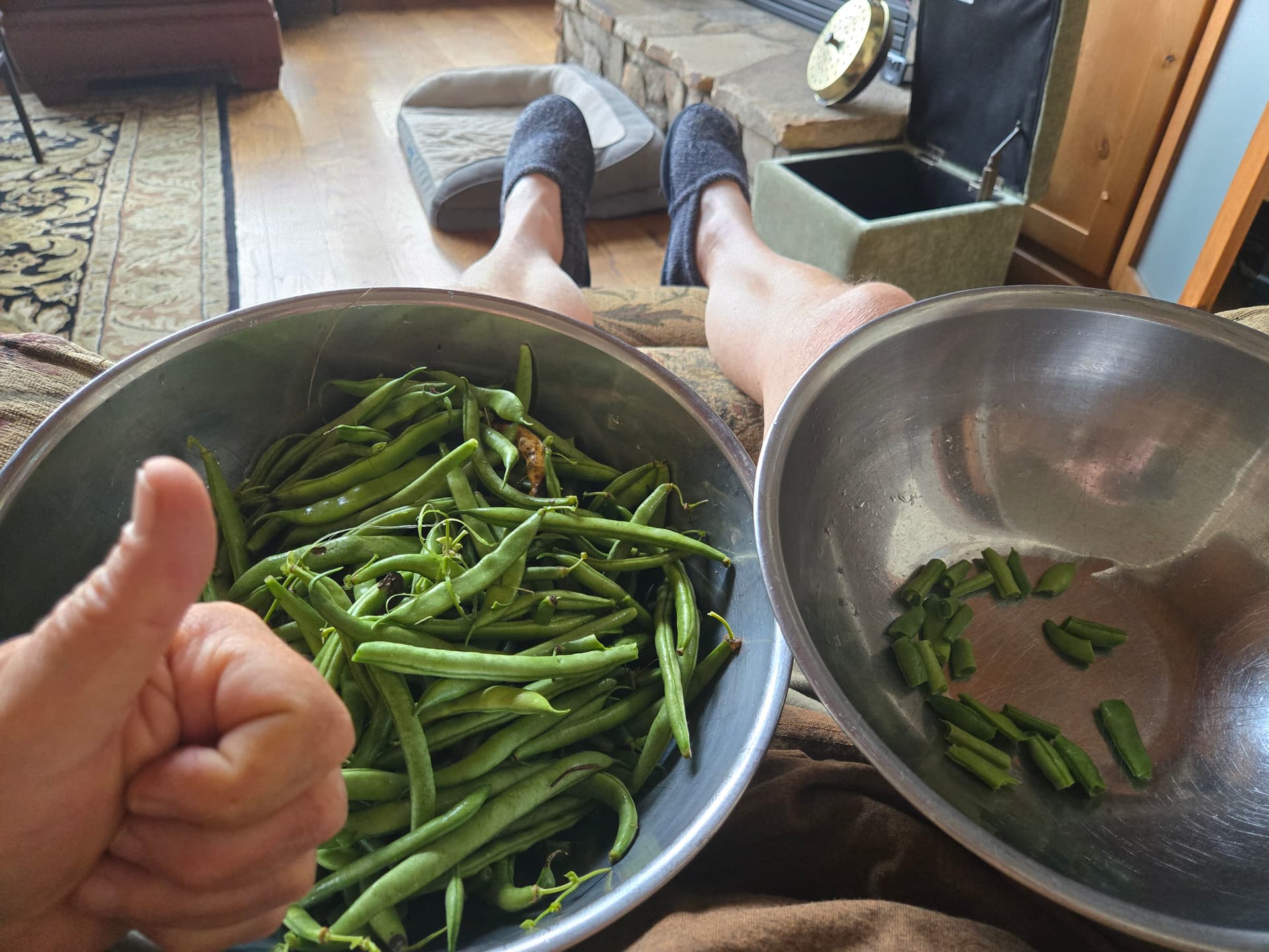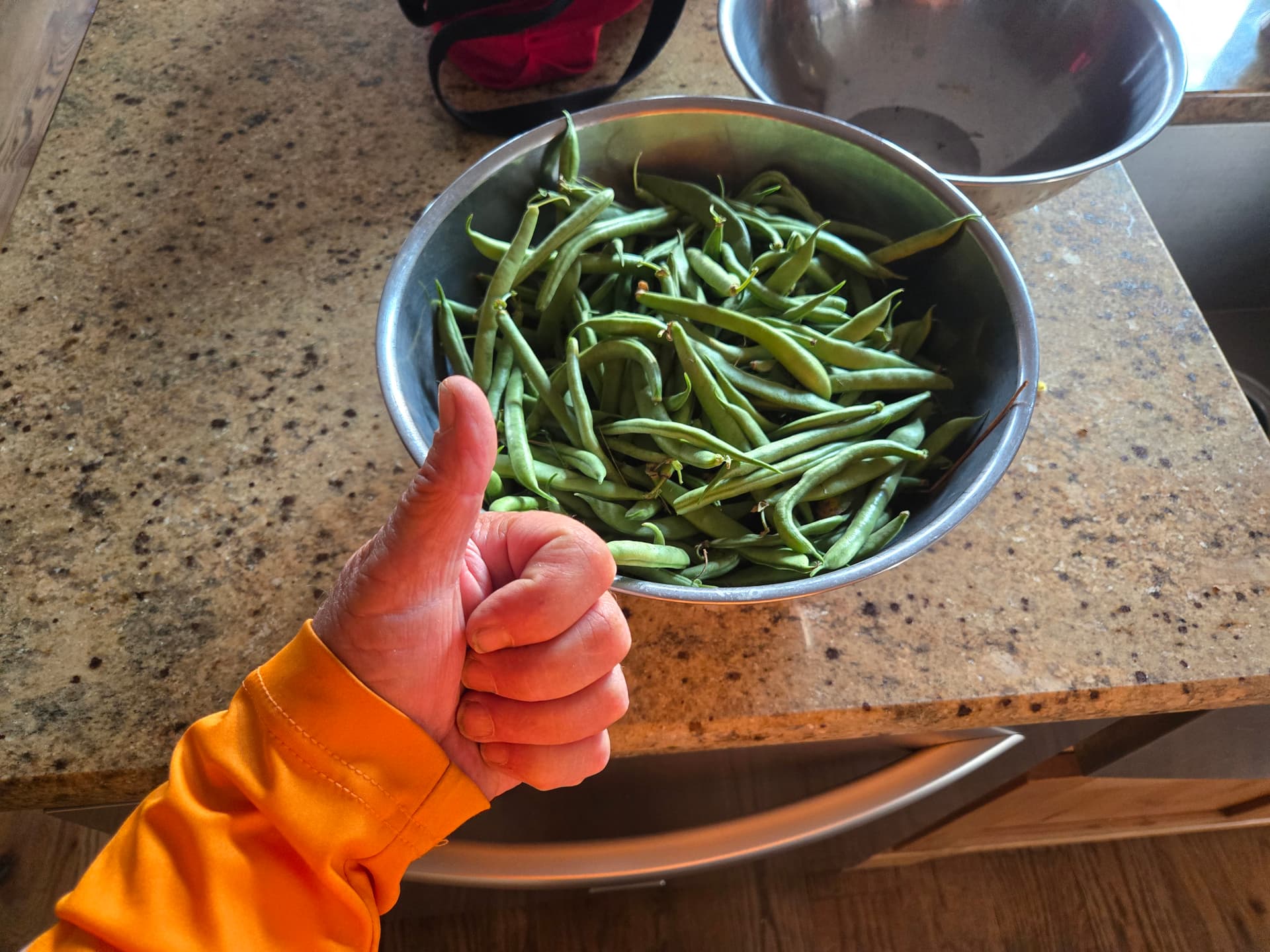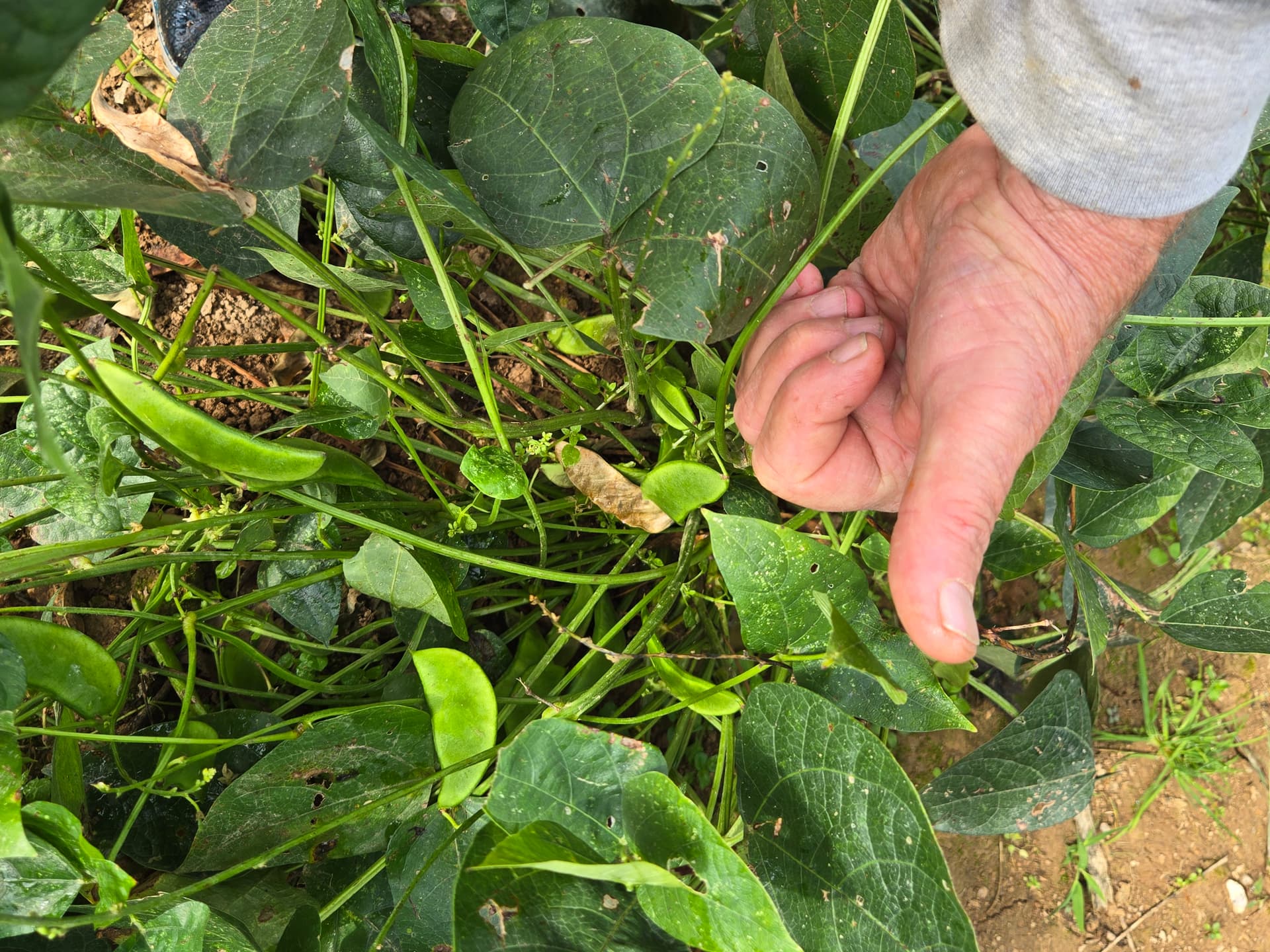 The last of the green beans pulled this morning. Granny Fisher would call it a “healthy mess”