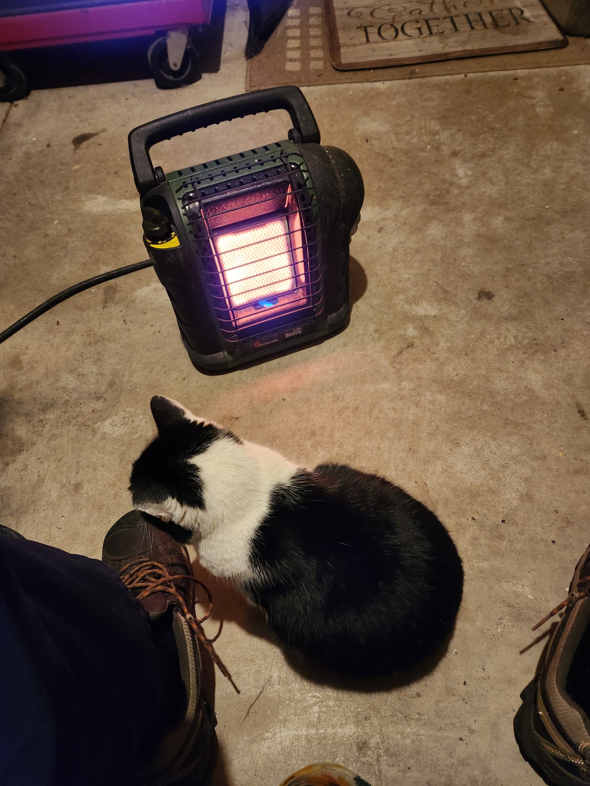 Same here. Pretty well stocked. I hate It for the fish and critters. This is my wife’s stray cat, Cleo. I keep the garage open and food, water and heat for her.