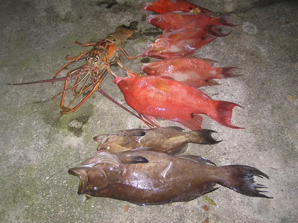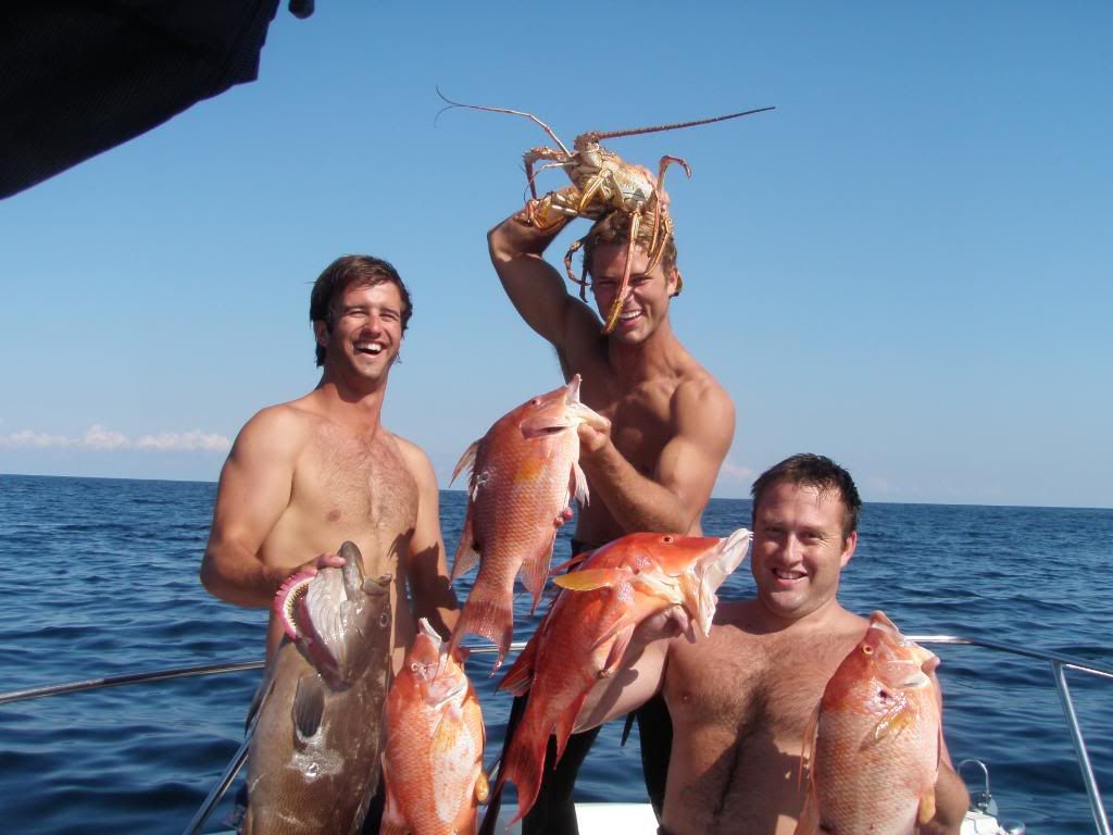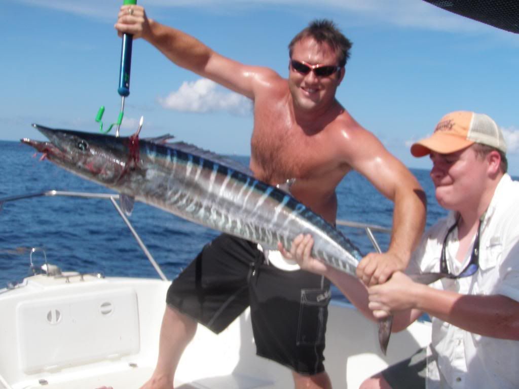 Left out of the Jetties We trolled in 250' and caught the dolphin and then moved in to 150' where we caught the two wahoo. We caught the Lobster hogs and the grouper in 105'