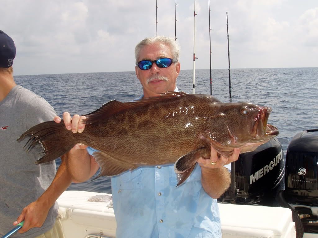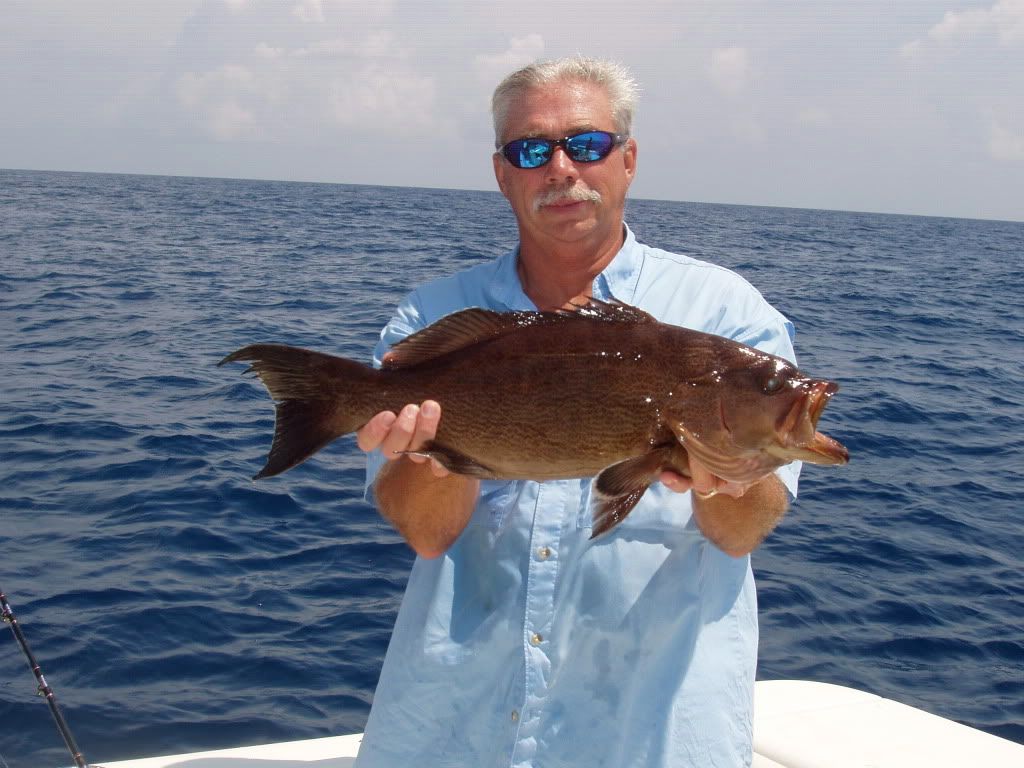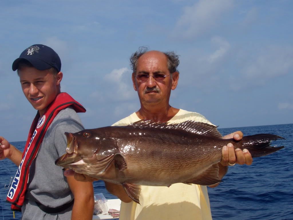 Had a great trip on the water today. Had best friend Tommy and 2 friends from Georgetown Ky on the boat today. Chris just graduated from high school and will be going to the University of Kentucky Nick is still high school. The boys did great and had a super time. We left my dock at 5:30 went to 10 mile and caught live bait. Finally had enough live bait and headed out the BRD ledge. Lines in the water at 9:15 first grouper on 9:20 a 34" bigg grouper. Put my second bait in the water 9:35. Next grouper on 9:36. The bite was red hot. see the pictures.