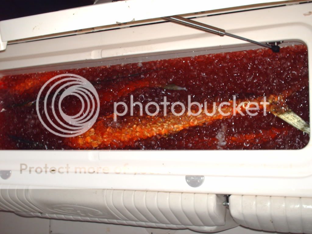Started out the morning at 3am to find out our two guests were going to be no shows so we headed on out just two of us. Hightailed it out the Folly river at 3:30am with about 1 ft of water under the props crossing the river and then out the Stono inlet to be met with a confused chop, pointed a bit further N to get a better ride and set the A/P and radar and settled back for a 2 hour bumpy ride. Started to lay down a bit more once off the ledge and ran out to about 1200ft to a nice looking temp break and some scattered weeds. Lines in and trolled, and trolled, and trolled till them ballyhoo couldn’t hold thier breath no longer and went on strike! Finally picked up 2 just as we were deciding to run back in a bit, picked up anyway and ran back in to about 350-400 where Miss Amanda and Really Blessed who we had been talking to were boating some nice fish. Found a nice rip with scattered weeds, flyers, and some boards and a big piece of line in it and prooceded to drop lines in and bam, bam, bam, multiple hookups start happening left and right, picked up about another 10 gaffers with a few slingers thrown in the mix on that one area. I really would like to know also tho, who put those rubber hooks in our tackle drawer!!! Lost about 6 really nice fish, some just went airborne and decided to spit hook, had something come and cut mainline above swivel while bringing a fish, lost favorite wahoo lure:(. Saw about a 12 ft shark cruising the surface, couldn’t ID it, looked long and skinny. Ocean glassed off and was flat calm all day, ran back in at 32, across the river bars and got boat hauled out, washed down, fish cleaned, bagged for freezing and into freezers, whew!