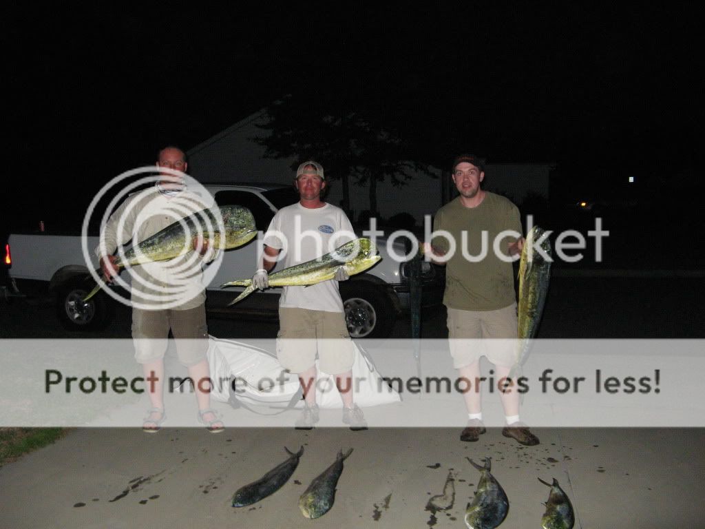 headed out at 4am out of murrells inlet. Had 2 friends with me that have never been offshore before so I knew I was going to be very busy. We were met with great conditions. We picked at them until about three. The area I wanted to fish was covered with the big boys so I (Knowing the little guy shouldn’t bust in on the big guys) worked the outside of the group. Worked in 250’ - 350’ all day. 10 mahi, all decent fish. To my friends they were huge (compared to fresh water fish they have caught) It was so great to see them fight the fish. They got their a$$ handed to them. Lost about 10-12 mahi due to spitting the hook. My friend now know the importance of keeping the line tight. I was very busy re-baiting, checking bait, and clearing lines since I was the only one that had any saltwater experience. Great day on the water until the ride home. I don’t know what happened but we averaged 19mph the whole ride home. All in all a great day