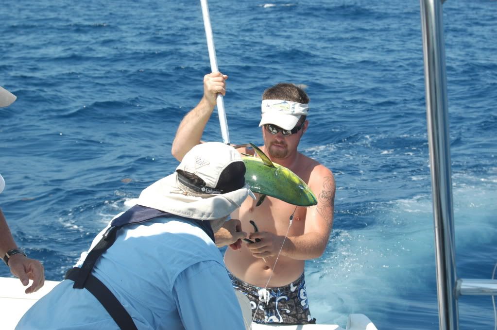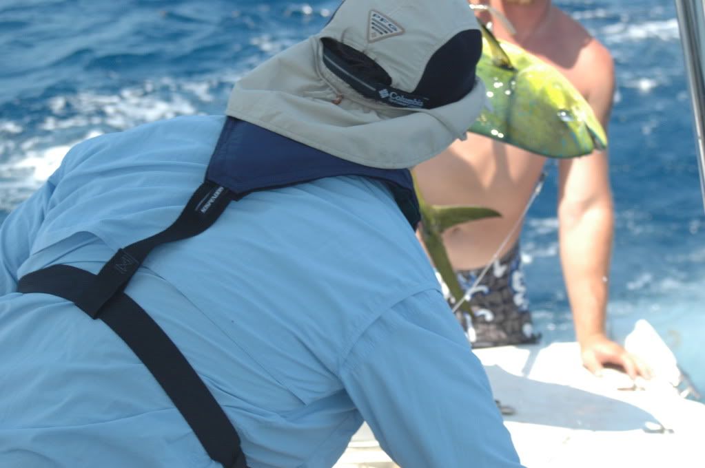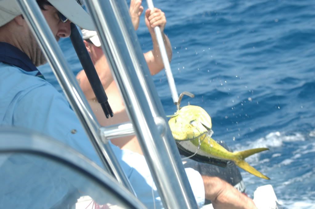 Headed offshore southeast Sat around 4:30 making good time. We were out about 30 miles when my port motor dropped down to 3500rpm. We worked on it for about an hour and determine that the fuel filter had blockage. We cleaned it out and started back out about 5 miles later it clogged up again. I was determined to get to the fishing grounds so I locked down the throttle and kept going out. We started out on the weed line in 137ft but had no action and did not see any other boats hooked up. We pulled up and headed east. At the 200ft line we picked up a dolphin and had one follow the fish to the boat. We proceeded outward and found a weed line between 250 and 300ft. We boated another 2 dolphin. We had about 4 fish that we missed, we made a few mistakes. Overall we had a good day except for the port motor. We headed back to port with 1 and a half motors. When we hit the jetties the port motor cleared itself.
