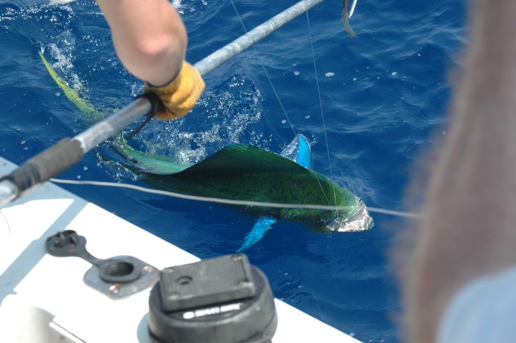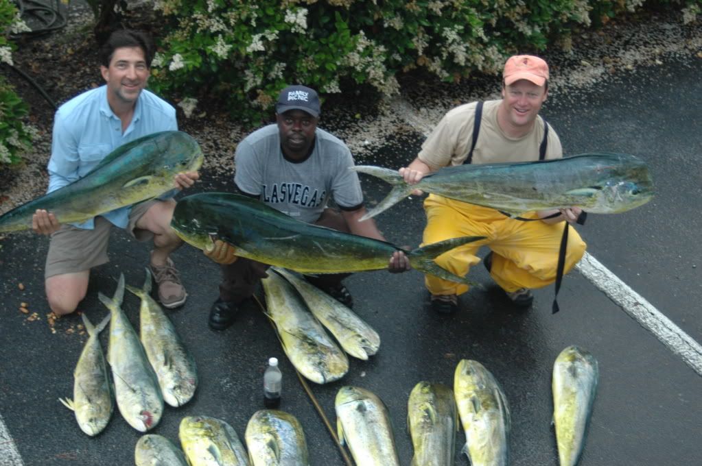 First of all thanks to the Mothers that let us go fishing on Mothers day. We headed out deep on Sun. We did not see any good water until we hit 350ft. We picked up on the blue/green water break; which by chance contained a weed line that strecthed for over a mile. We fished the blue side and stayed there all day. The bite was continuous until about noon. The water temp was 78.8. We ended up with 15 dolphin and one shark. We missed about 4 dolphin. Great way to spend mothers day with the guys.