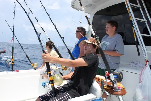 The Hall family joined us for a two day charter to celebrate their daughter’s graduation. The first day was with the fathers, uncles and sons while the 2nd day was with the inlaws and wives. Only 1 out of the group had been offshore, so it was enjoybable to take them out and watch the boys catch their first dolphin.