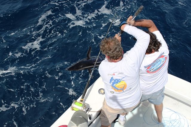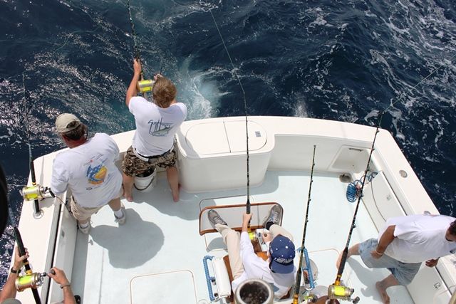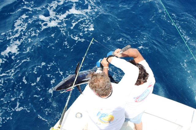 Wahoo were caught mostly on planers. Tuna liked blue and white.