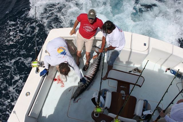 On our 1st charter of the year on the REEL INTEREST so I thought we would head to the GT Hole, but we found some nice water at the SW Banks. Had our first Wahoo hit after just a few minutes of our lines in the water. The Barracuda and Bonita kept the Charter group busy during the day and we managed to catch 5 Wahoo and 3 Tuna, including a large Hoo that wew estimated to be at 75lbs. and the BFT at about 25 lbs.