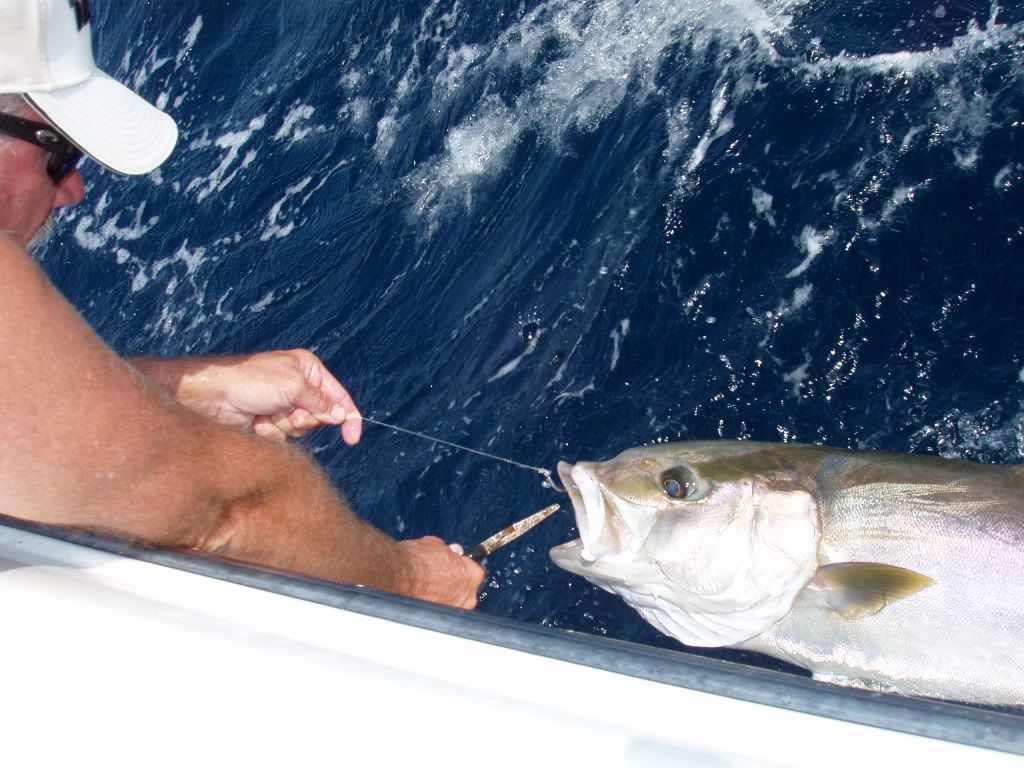 Left my dock out of MI at 5:45 going to the break in search of Mr. Gruppa Had good friends Tommy, Lee and Mike aboard PaPa’s Toy. First and for most the forecast of 2 to 3 was WAY OFF Caught bait and headed out about 8:45 arrived at the break abut 11. It was a tough day on the water I am sure there some 8 footers at the break. But still had a great day. Had an opportunity to fish with Lee and that was a fun time and I am looking forward to doing it again just on a much better ocean. Ended the day with a VERRY SNOTTY RIDE BACK. But in a day or 2 I will be ready to go again. Every day is a blessing to get to go fishing.