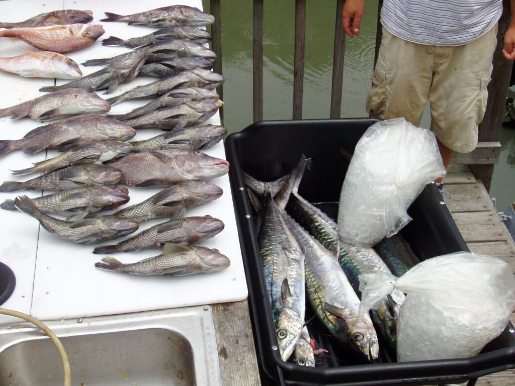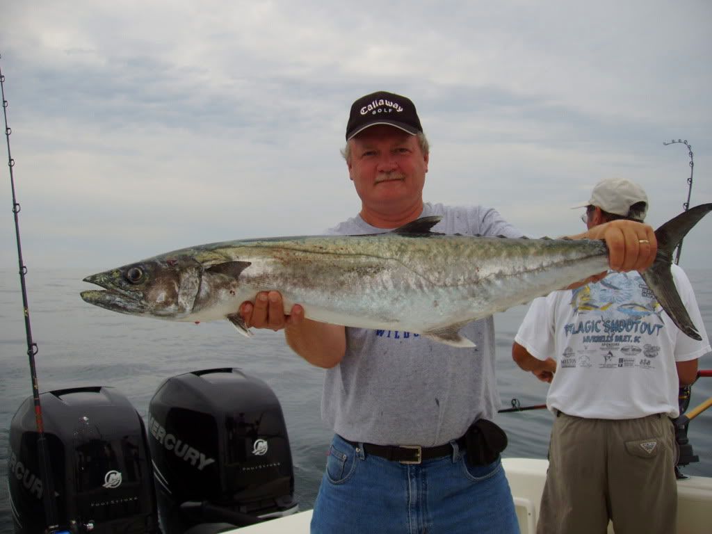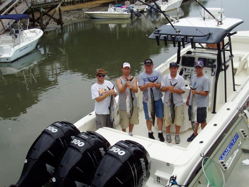Had some friends in from my old home town Georgetown, Ky. that wanted to do some fishing SC style. Had my best friend and first Mate Tommy on board PaPa’s Toy along with the entire male Popp family. Big Steve, Steven, Arron, Matt, and a friend of the family John. Left the dock 6 am, bait caught 6:20 arrive at the parking lot 7:30. Yea the seas were absolutely great. ran out at 45 mph. Started trolling for Mr. king 7; 40 first king in the boat. caught 5 more before 9 and the the boys wanted to bend some rods. Water was FLAT CALM !!! Very nice.