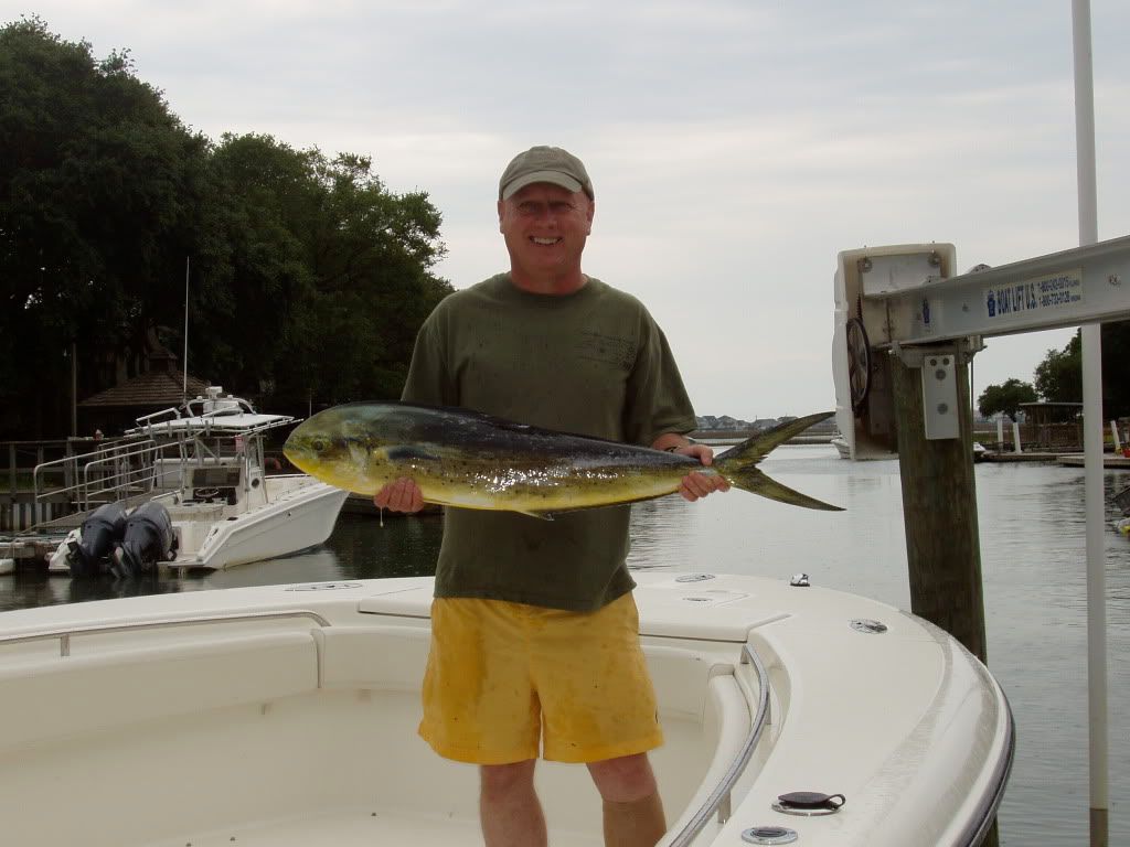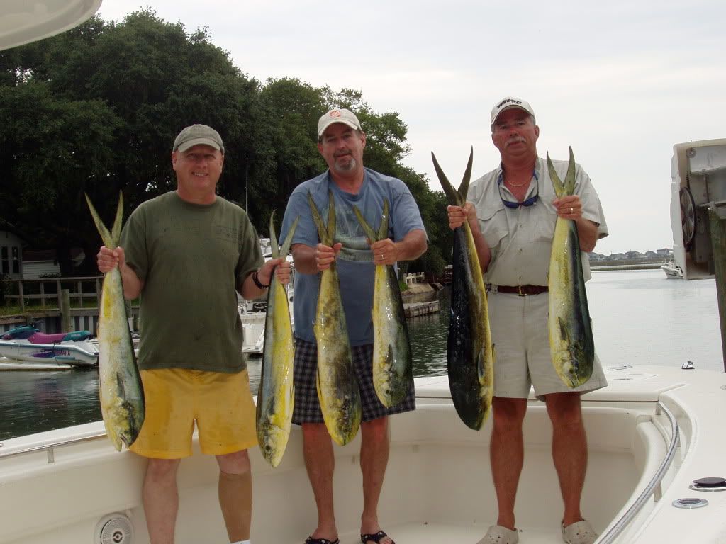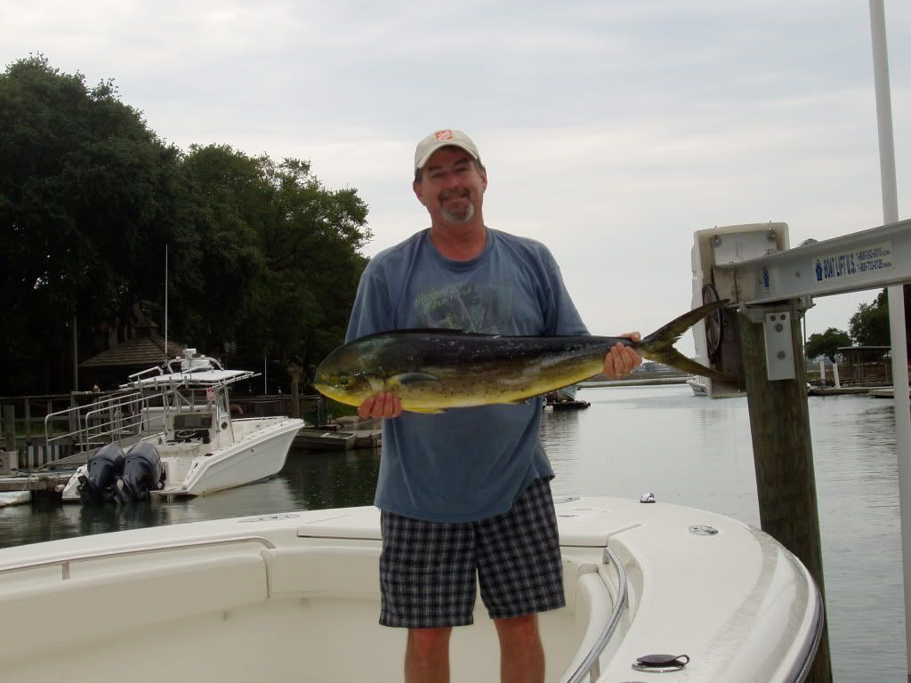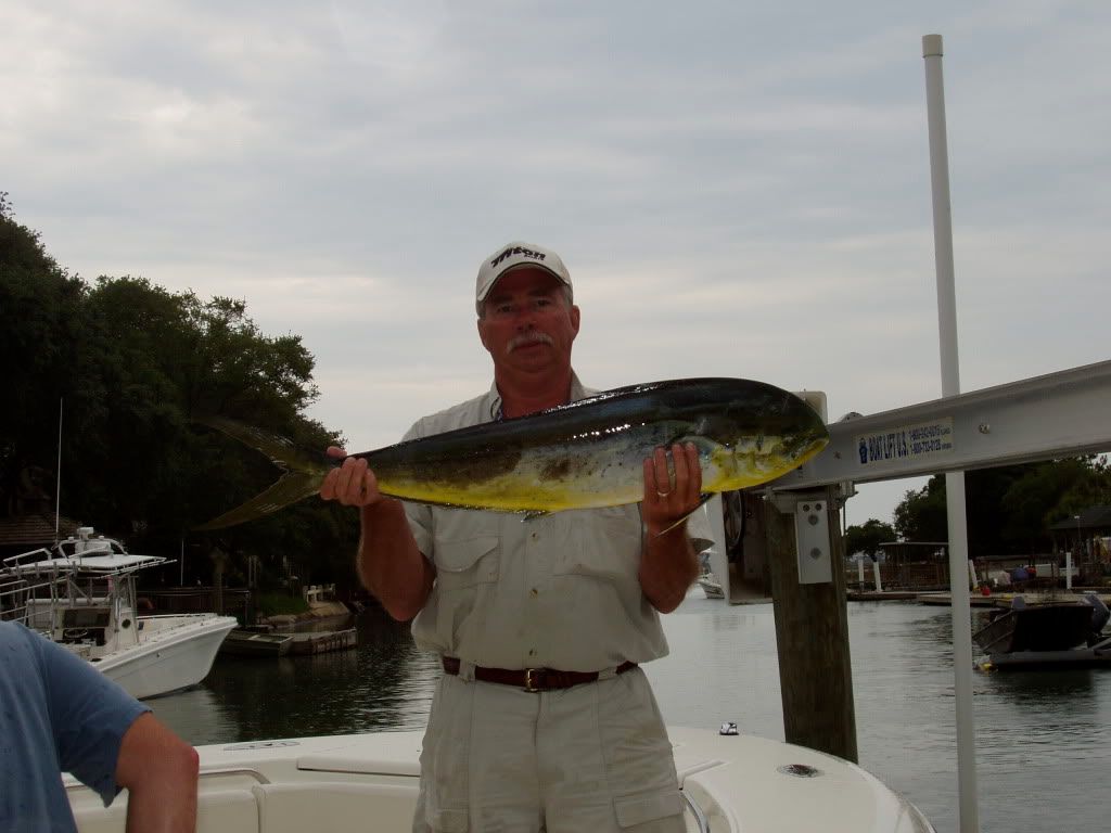 Had a short crew onboard PaPa’s Toy today. Good friend Mike and Scott. Only 3 of us today made it tough to clear lines and get it all done. We had a good day on the water. Fished all over today started at the Scarp and nothing water temp 73. Moved south then offshore to the sanctuary. NADA. moved back in caught first fish in 600’ water temp 74.5. Fished in the weeds all afternoon. Had a tough time with the baits and weed and more weeds. Ended the day with 10 dolphin. Lost the biggest at the boat to a bad crimp on the leader by captain Rick. Now I know when the crimp is to much thats when the line breaks. Had a great ride in made 45 mph all the way in. All in all our best day offshore this season.
