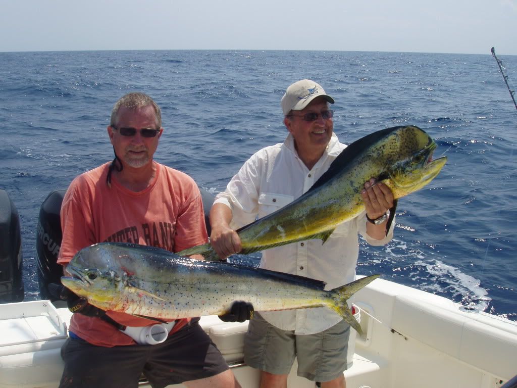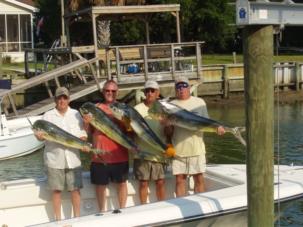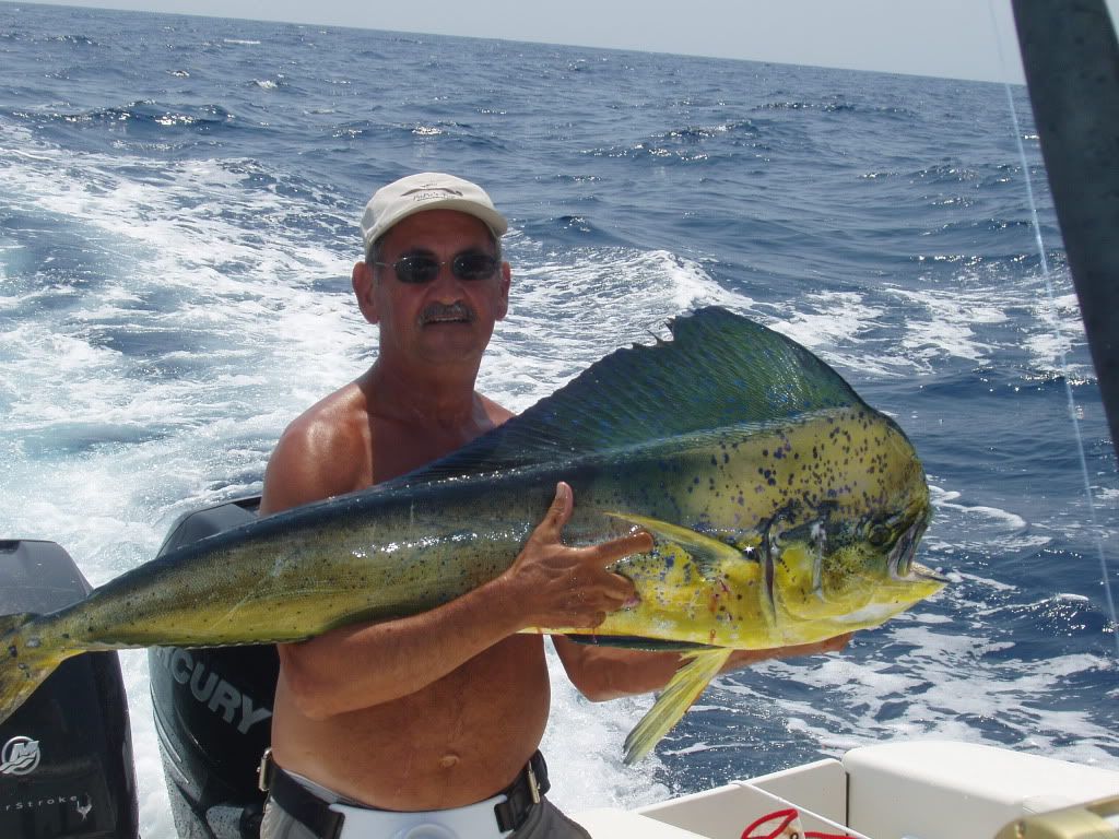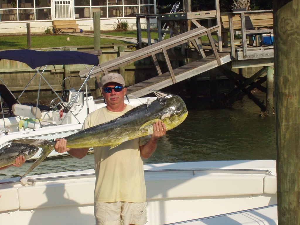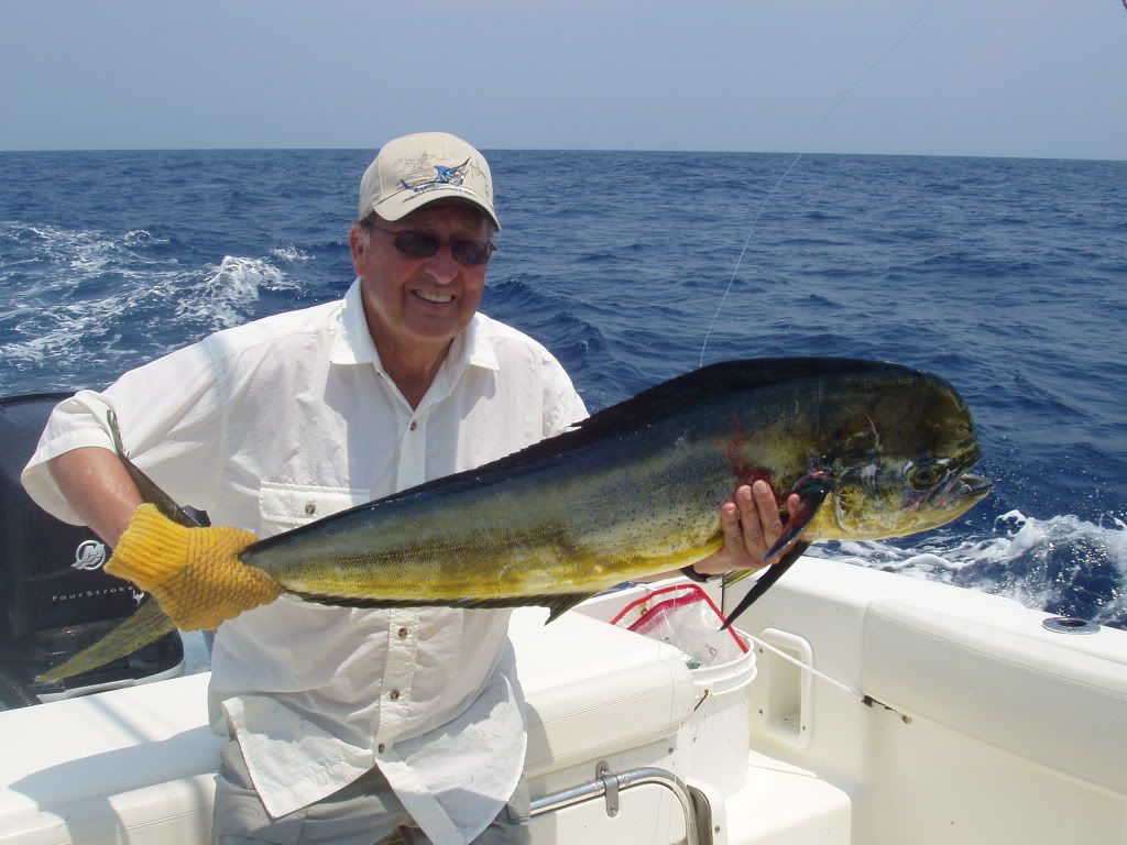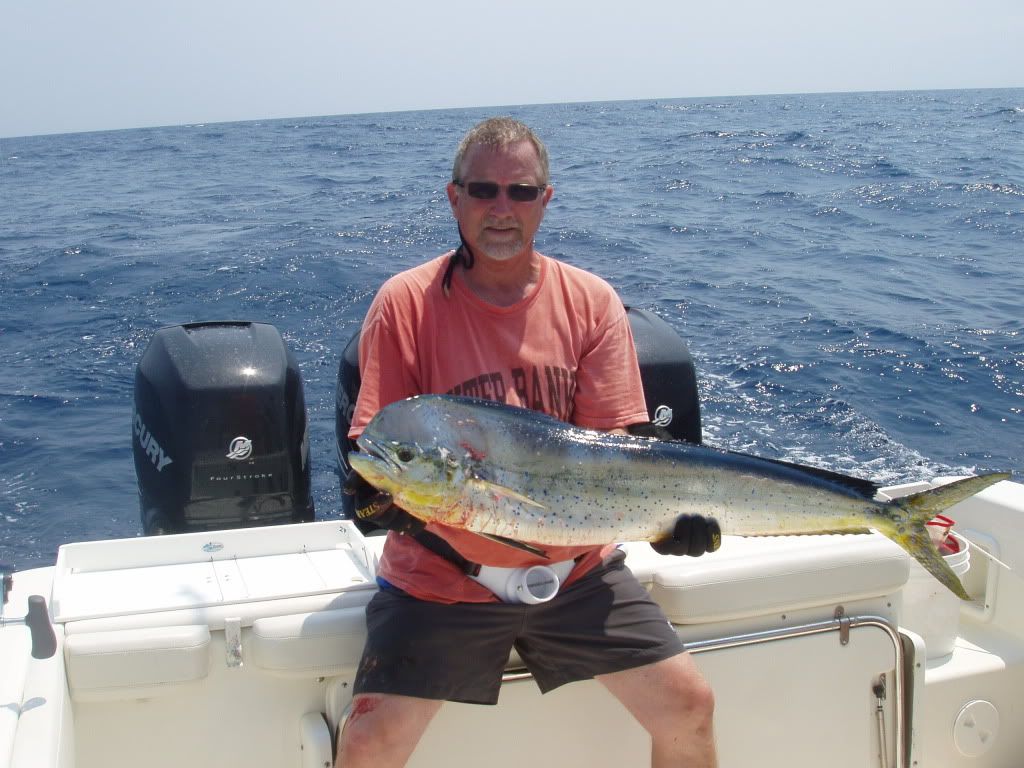 Had a great day on the water today Fished the Gt Hole and found some warmer water. Had my best friend and First mate Tommy, Good friends Bill an Tom. Left my dock 6;00 Lines in water 8:10. Little bumpy on the way out. Fished in 185 to 350 most of the day. Ended the day with some really big mahi 8 in the boat, lost 3 jumped off.Nasty ride home soaking wet, did not put the wings up, SHOULD HAVE.