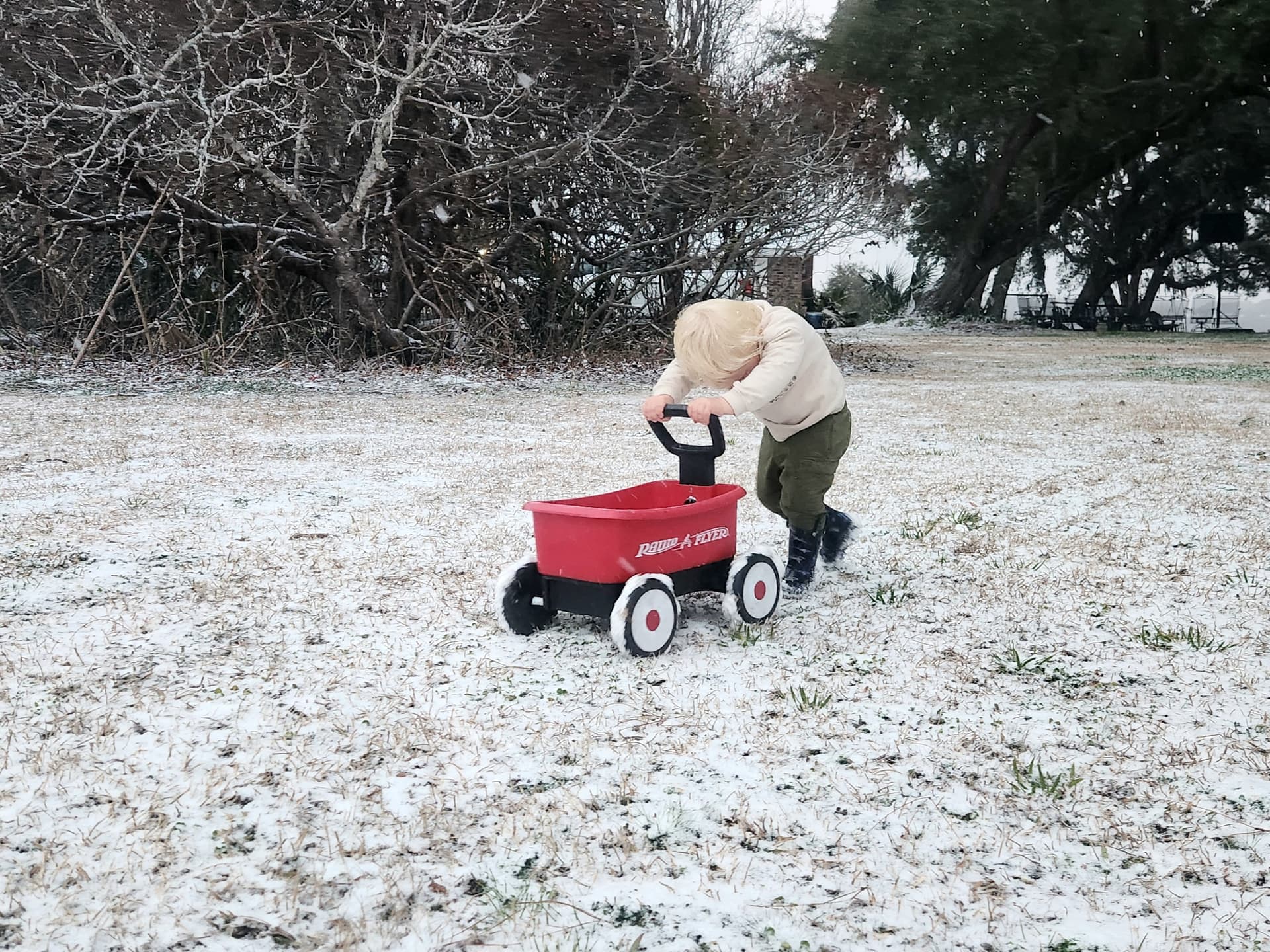 28° and light snow on Cypress Garden rd, between Goose Creek and Moncks Corner.