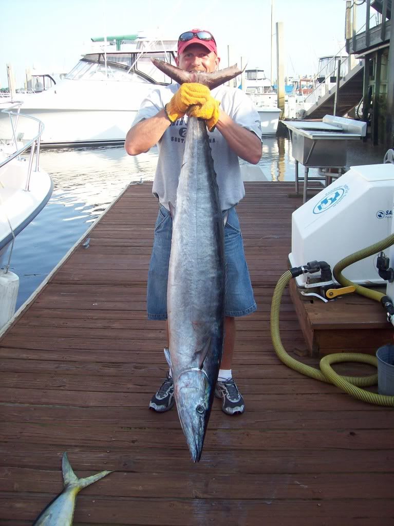 Camera man just got me the pics. Fished 100/400 and Blackjack out of Little River. Caught a couple of dolphin and a daymaker wahoo (don’t know exact weight, length was 5’2" and girth was 28" - online calculator says 60.76lbs). Tale broken trying to get in fish box. Conditions were perfect.