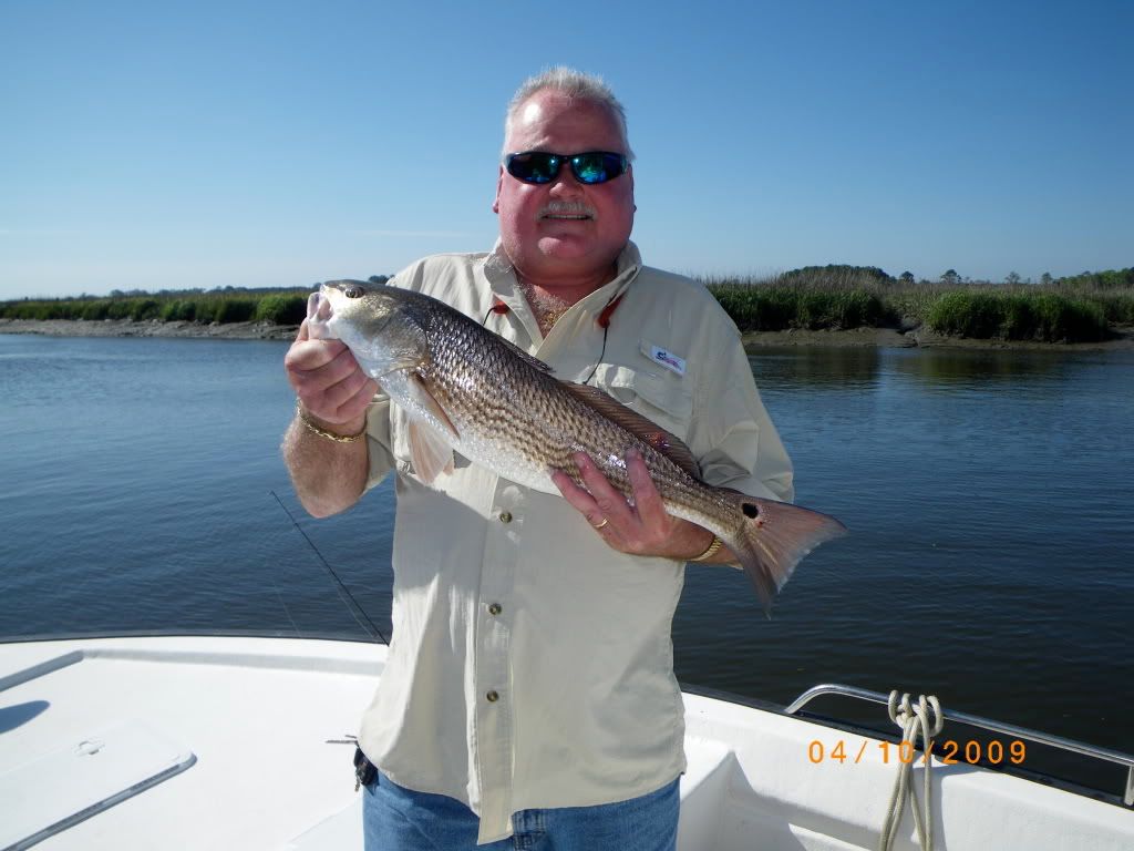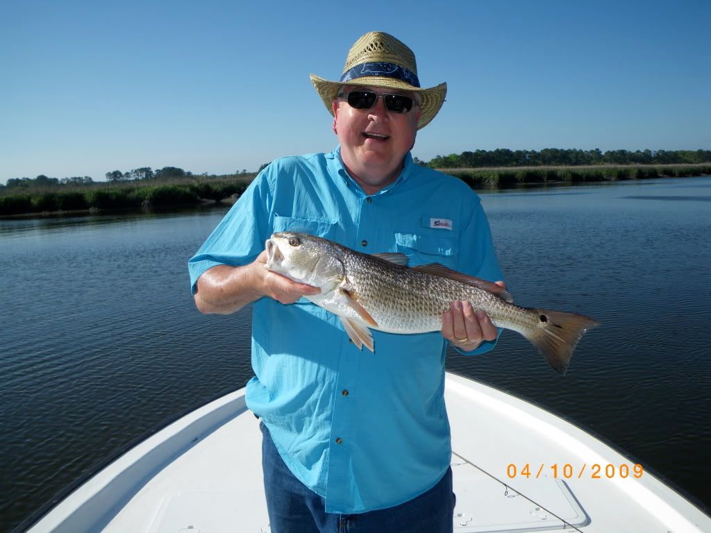 My clients today could fish and we got on what turned out to be three schools of different sized reds (I guess, "cause we couldn’t see them) moving up and down a deep bank. Herb and John whacked’em on Berkeley Gulps. We had double hookups, fish cutting off on barnacles, 16, 19, and 25 inch fish, a 19 inch trout, it was on! Bob