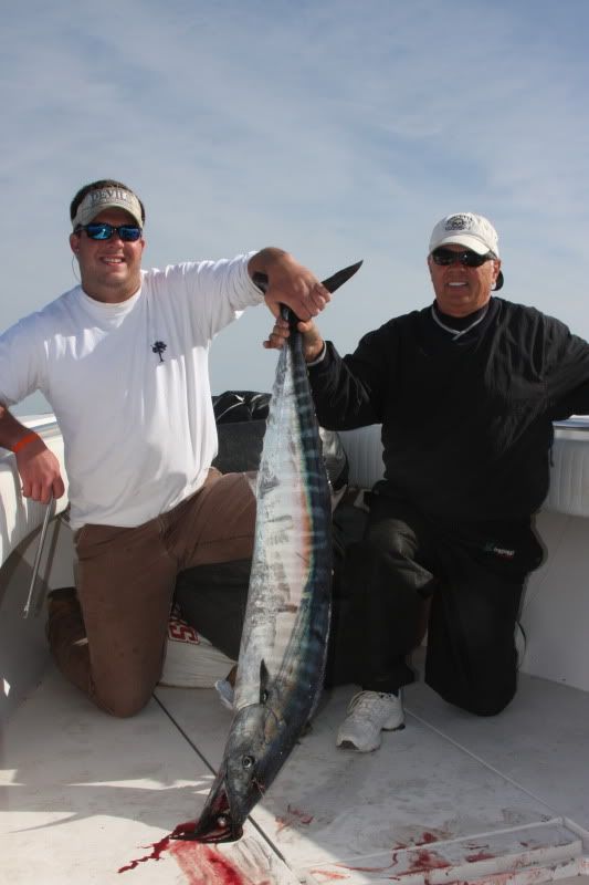 Boated another wahoo that entagled 2 lines and forced us to hand line him the last 30ft and he cut the line as he came over the gunnel. The gaff was maybe 2" below the dorsal! Had another hoo sky on a lure but missed it.