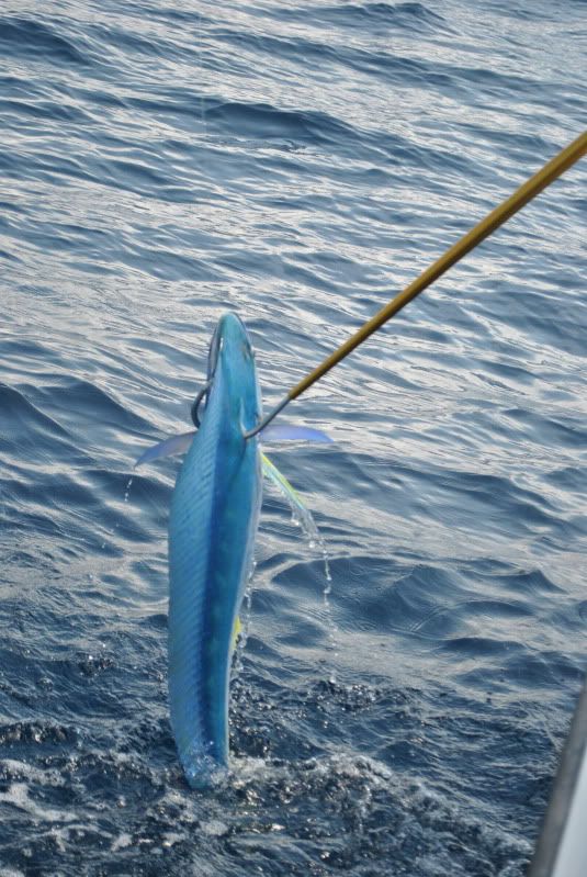 Set up shop in big seas on the ledge at dawn. Managed 4 BFT by 10 them decided to work the trough heafing offshore. Little intrest until we found the fish at 1pm. All the lines went down at once when we passed some large floating object. Still don’t know what it was bc we were trying to grab rods but I did see some small tuna looking fish around it as well. Next thing we know there are 100+ gaffers under the boat. We busted out the spinning gear and a bonito from the box and put 35 (mostly gaffers) in the box in an hour. Sea did lay down. Mote pics to come.