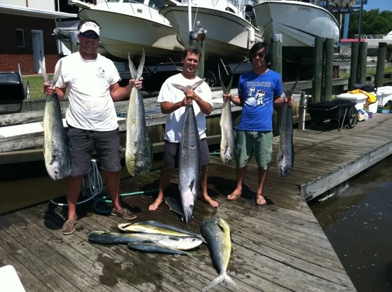 Started trolling around 530 am and get a dolphin on the second line out. Action is hot. Its amazing how quick things change out there. We put 3 good dolphin and a nice hoo in the box by 6:30 am. Fished until 12:30 and ended up with: