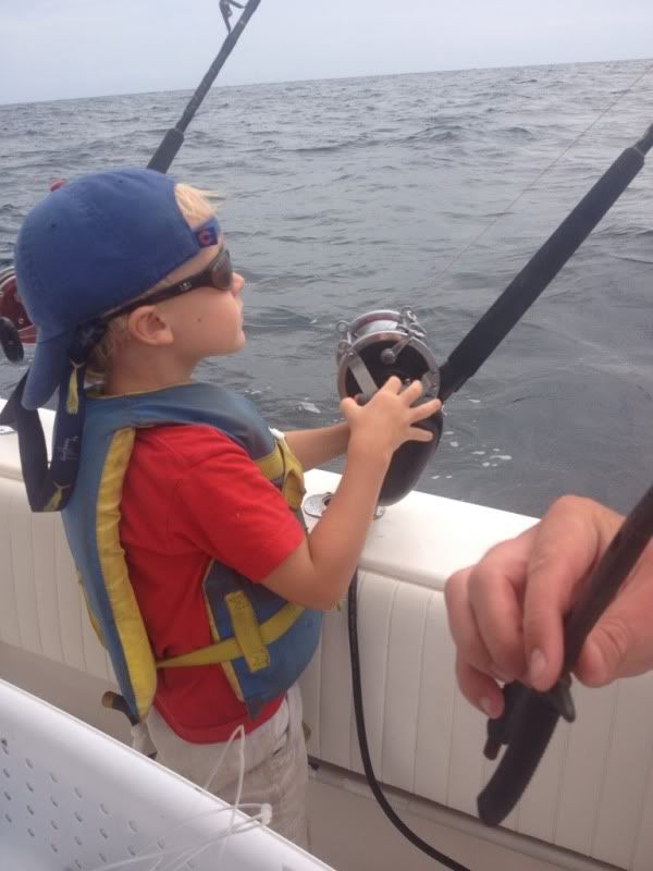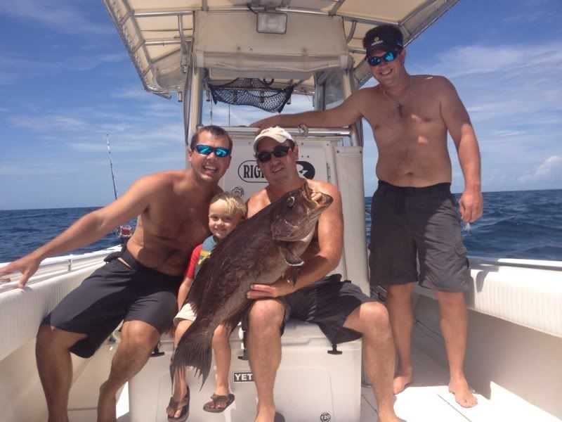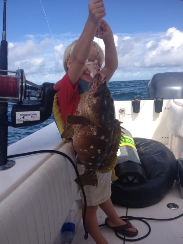 ALuke (4 yrs old) armed with electric reel nabs a rock hind and a 22# Scamp