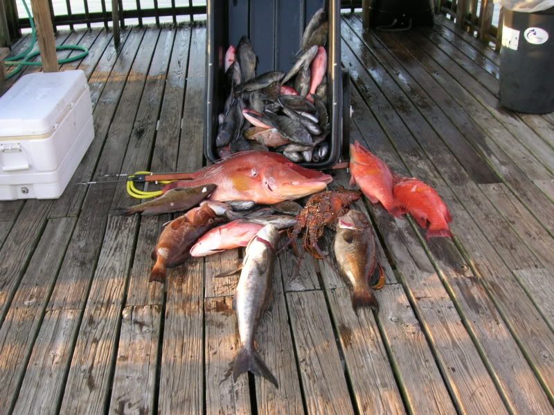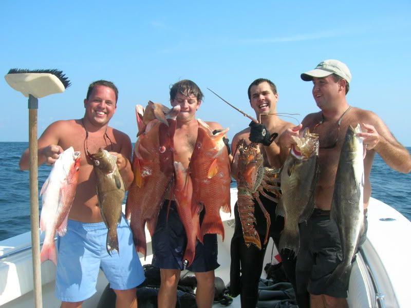 We had 2 live baits on the bottom, but the the 2 diving swam right under the boat. Bubbles were actually coming up and hiiting the boat when one of the rods doubled. I figured we had snagged a diver but it turned out to be a keeper ARS, go figure. This time they brought up 3 hogfish, a red grouper and a 10# bug, pretty good dogs. Big hogfish was 26# at GLM. Body count was 87 all total.