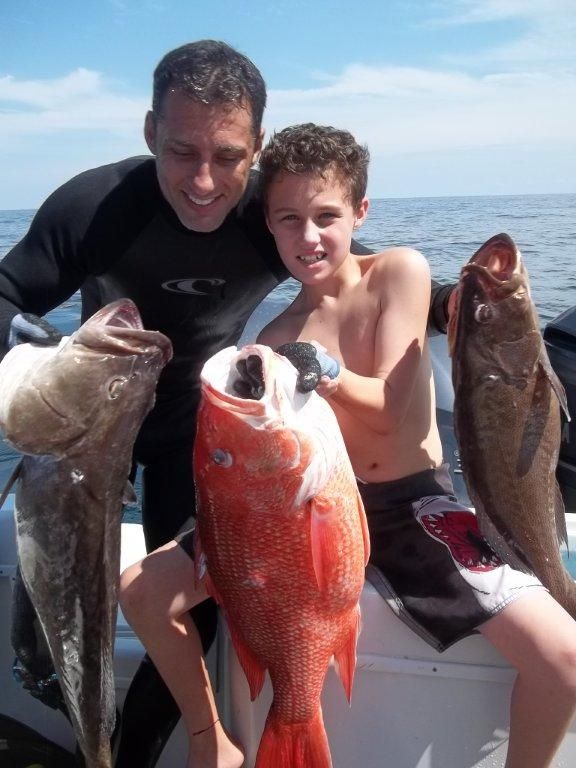 IT’LL DO left the dock at 7 am with a crew of 8. We all had our sons on board for the trip. It was actually Ryan Harding’s first offshore trip to see and experience what his father has done so many times. We stowed the rods, spearguns, and dive gear for the 30 plus mile trip from the Jetties to the ARS spot we found 2 weeks ago diving. The water was perfect with us running 45mph with almost no winds all day.