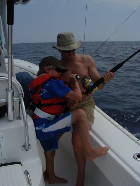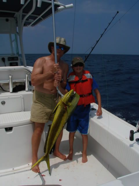 Fished with the crew of “little feller” on the Shady Lady. Left the dock in Edisto @ 4:00 and the weather made for a lovely ride South…not hardly! Still made good time despite the bumpy ride. Found weeds 300-400’ but too hard to troll and keep baits clean. Moved inshore and found a monster weedline after the water calmed down in 150’. Ended the day with 10 fish. It was shortstrike city. I think we went through 4 packs of hoo. Gamecock was the hot color of the day and Islander Jr’s also did the trick. All fish were slingers except two. Had young Parker on the boat and he reeled in a nice dolphin. Pics later today after I get them downloaded