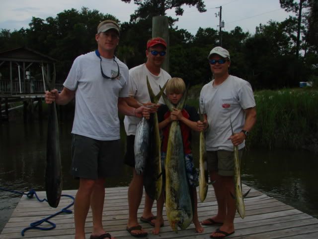 Left Edisto out of Fishing Creek at 4:00 to be greeted by a calm ocean. Pointed at the Ledge and hammered down. Great ride until the thunderstorm south of us had a different agenda for the calm ocean. Seas were stacked up and grew. Boat did great despite. Put lines in 700’ and trolled North to run from the storm. Picked up some fish all day but action did not get hot until a nice weedline in 250’. Put lots of fish in the boat to end the day with 20. Lost several close to the boat and had numerous knockdowns. Used 4.5 packs of Ballyhoo. Blue and white Islander jr and trackers were hot along with pink and white. Sea stars also saw plenty of action. Great day with the Fellers and had young Parker on board again. He is now rigging, washing down boat, opening fish box, handing captain cool beer, etc…