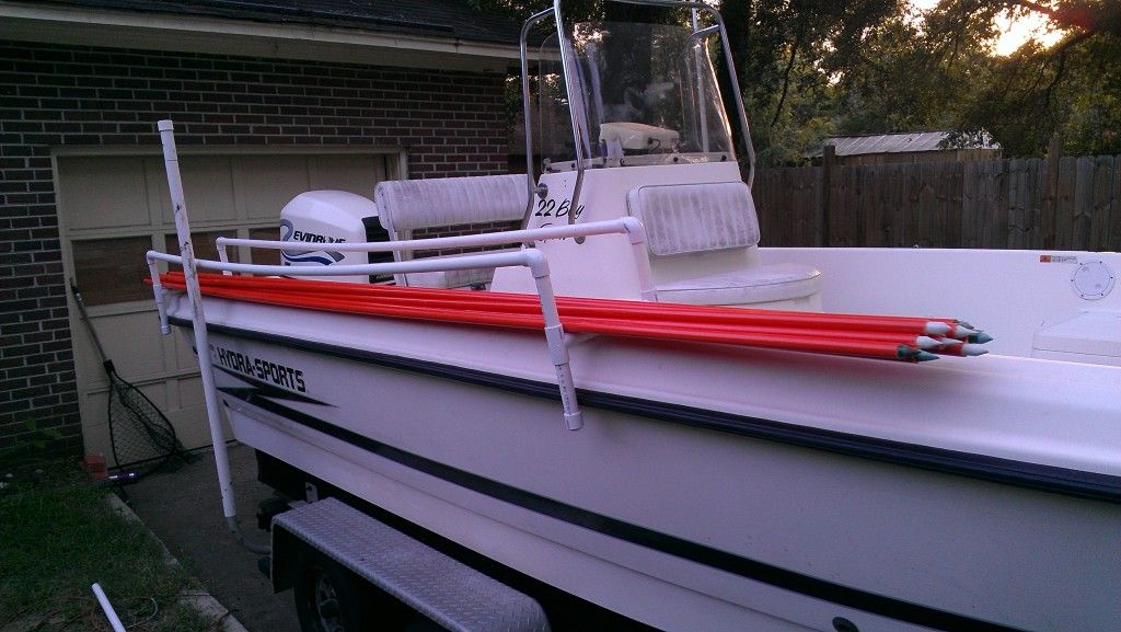 I got some shiny new poles today. I made a cradle out of PVC to keep them up out of the way. I know the pic doesn’t look real sturdy but its on there pretty good.