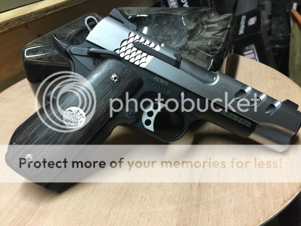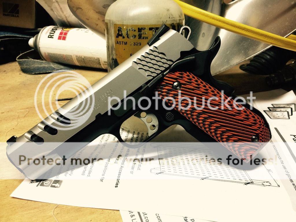 Smith and Wesson performance center 1911, 4.25" carry model. Stock VZ grips (orange/black), and two custom wood sets, one with inlaid S&W medallions and custom screws. Barrel has been polished. Heine straight 8 night sights. Gun has exactly 200 rounds through it and is flawless. Box and papers included. $1300 OBO CASH!! NO TRADES PLEASE