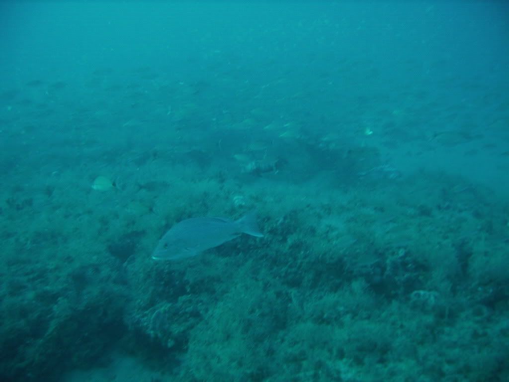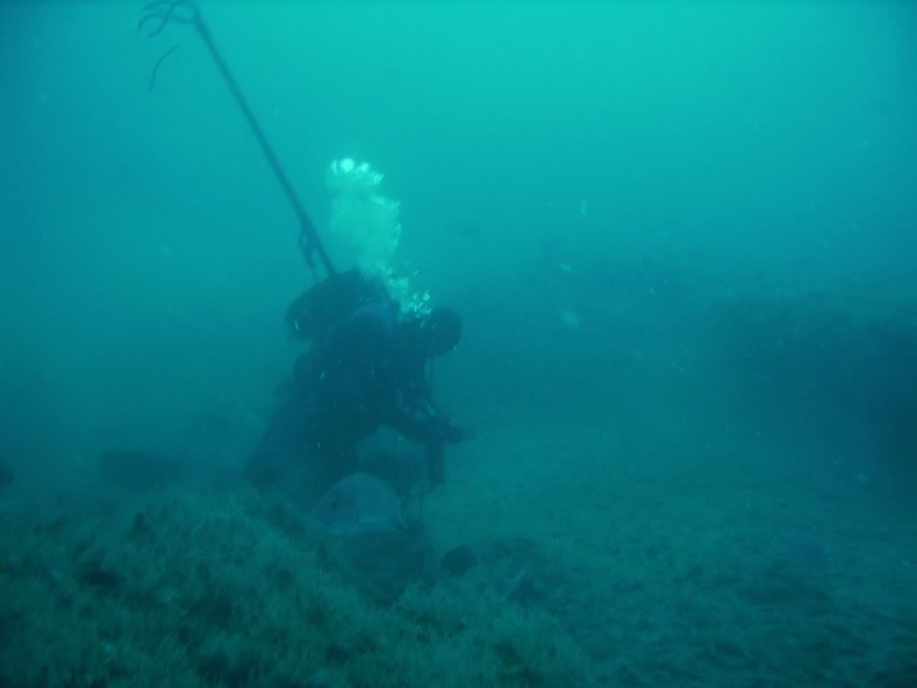 Left the dock around 8am on Friday with Ed, Chris, Patrick, Hannah, and Clyde. Headed out to jig for live bait but had trouble locating any bait balls. Desided to head to 75ft and fish and jig for bait. Chris and I decided to drop down to the bottom and find out what is going on with the fish. The bottom looked great. Maybe the first time these grouper had seen any humans. The grouper were friendly at first but figured out what was going on. We saw tons of Red Snapper, BSB sheaphead. I looked over and Chris was fighing with a big grouper -the grouper was on top at first but Chris flipped him. I ended up with 2 gags and a nice flounder and Chirs pickoff 3 gags. Vis was at least 30 to 40ft and temp was 64 degrees. Great dive and great numbers on the spot.