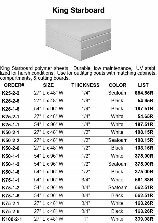They have a wide selction of starboard and plastics. Prices for starboard are less than I’ve found through other sources. Don’t buy it from West Marine unless you have deep pockets.
