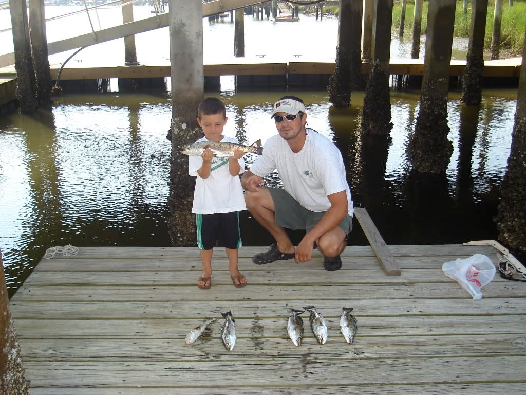 Travis Black, his son Treavor, and I fished the south side of Edisto this AM, where the water was a little clearer than it’s been in a good while. Treavor, age 4, fished with a push button spinning outfit and Trout Tricks on an 1/8th jighead and caught the most fish. We fished about 3 hours and caught 20 or so trout and one red. Travis owns Black Supply(803-259-7500) in Barnwell where his plumbing, electrical, and hardware prices compete with Lowes and Home Depot. Black’s is also the spot for the turkey and deer hunting info. Bob