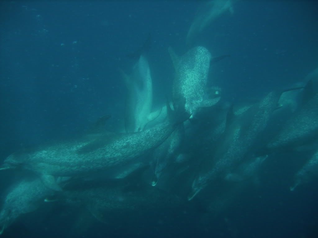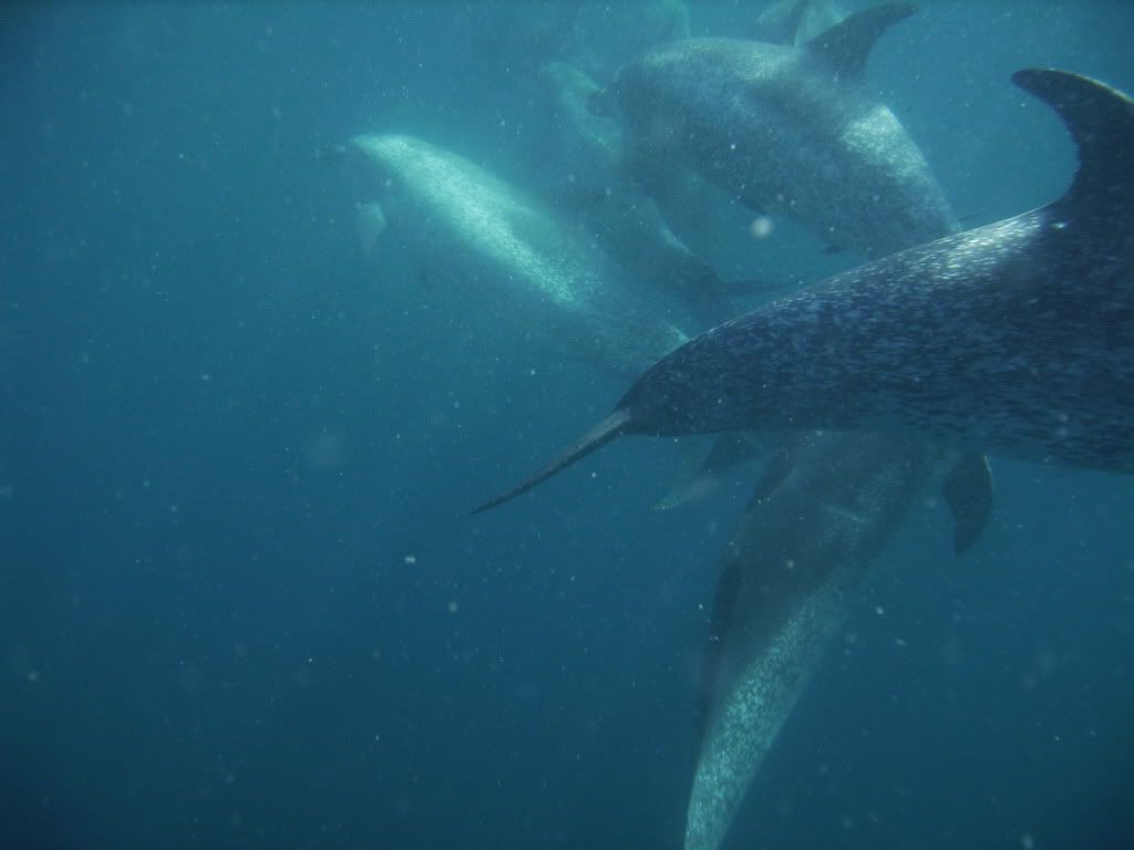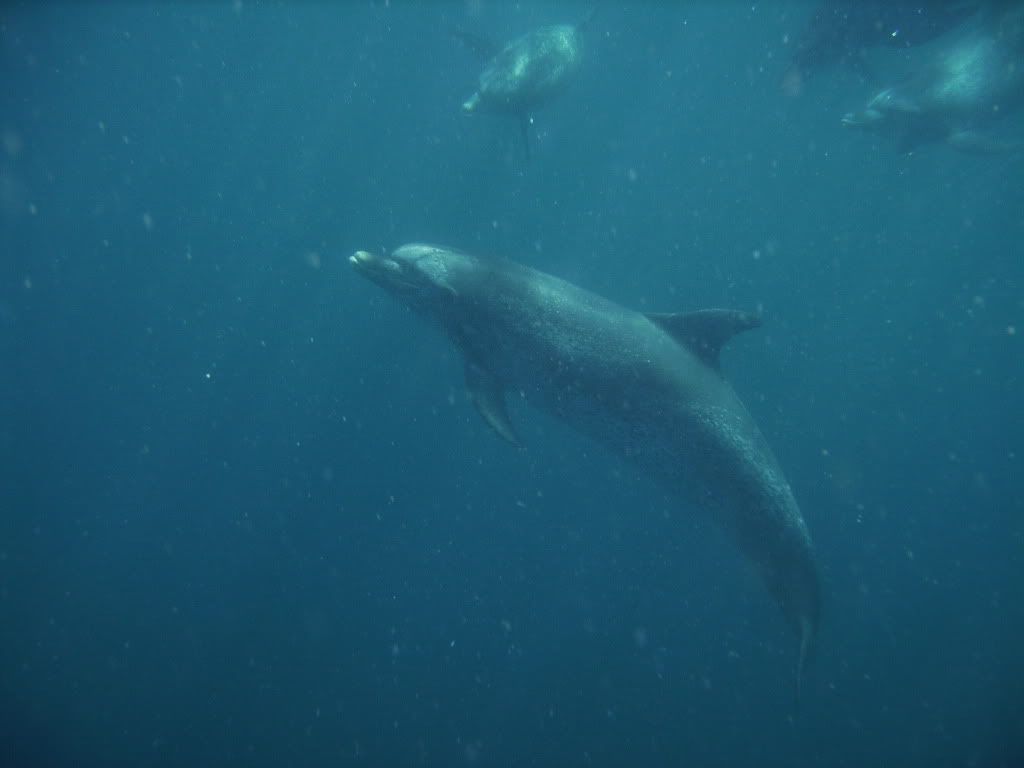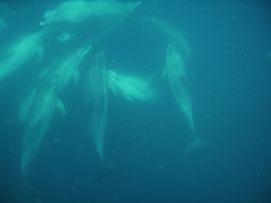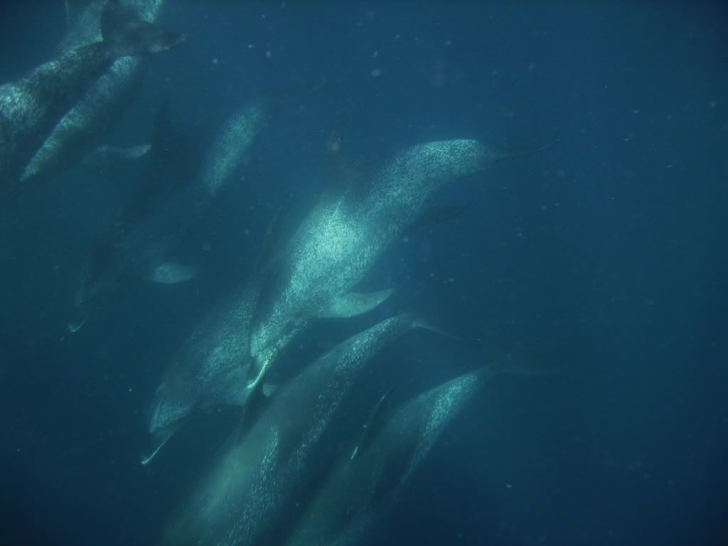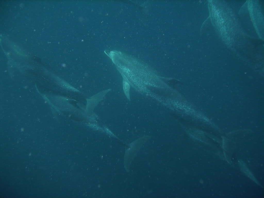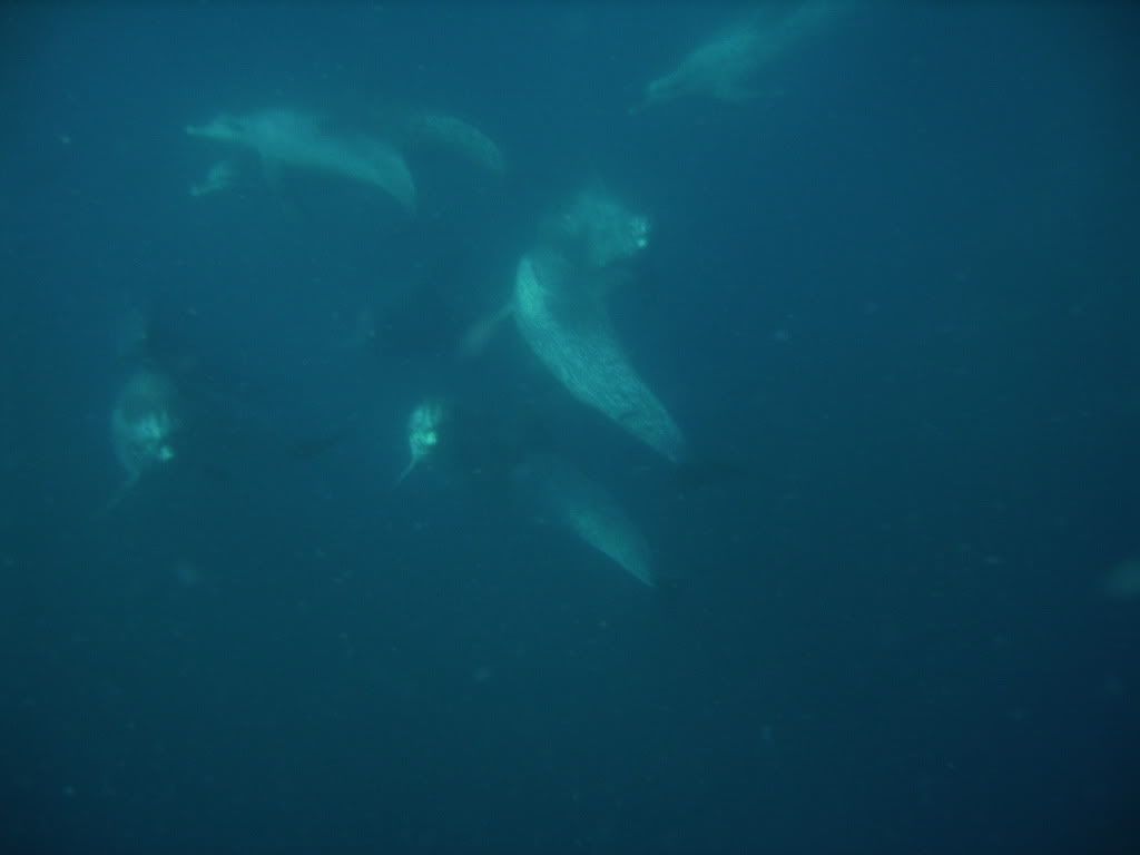 While going down the rope a pod of about 30-40 bottle nose dolphin swam in on me a played around for about 5 to 10 minutes.