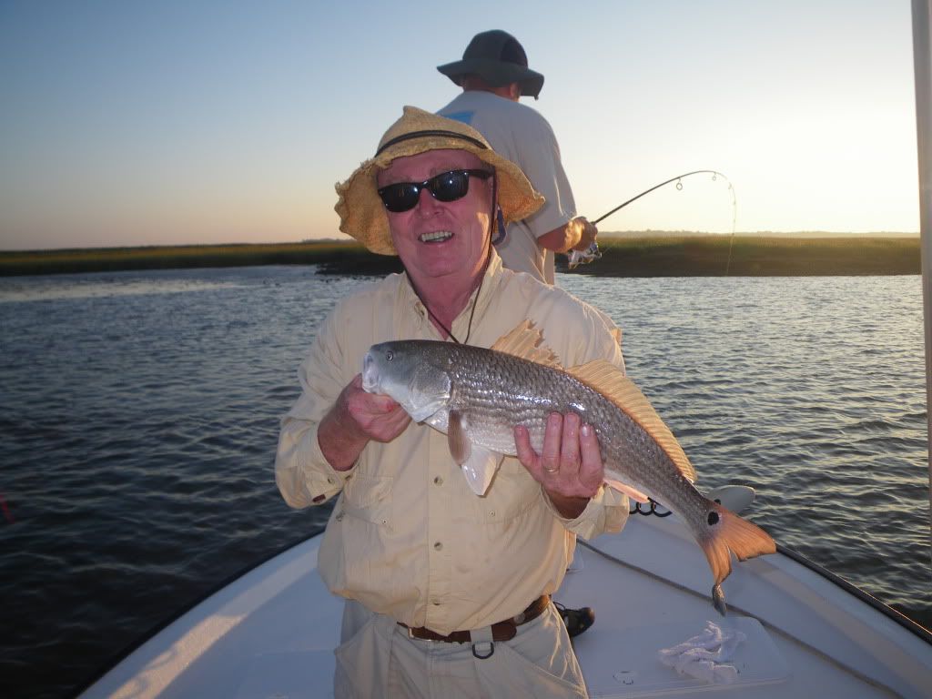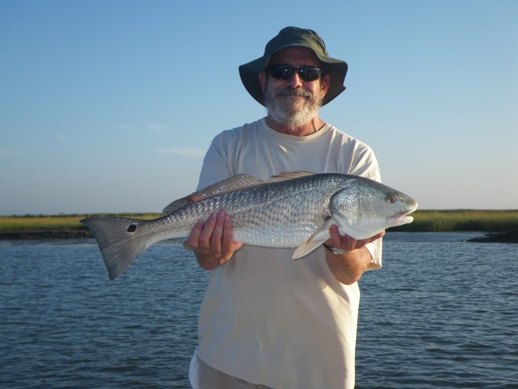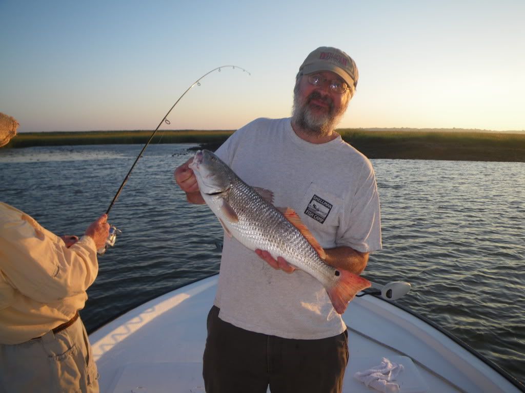 South to SW winds make the south side of Edisto too dingy for a trout bite, at least for me. Not so the redfish. When we got to the first spot, I could see the nervous water as I cut the motor and let the wind ease us into them. i slipped the anchor over the side and told my three clients, "I think we better fish only two rods at the time. " And with good reason, for as soon as they fired the Berkeley Gulps (3 inch shrimp in natural and new penny, but i don’t think color matters, as long as it’s a Gulp) into the swirls, it was on! Mostly tournament fish (22 7/8th in.) with a few unders, and one over (about 26 in). My clients kept seven for a big cook tonite. Maybe the winds will swing to the east soon and we’ll get on the trout.
