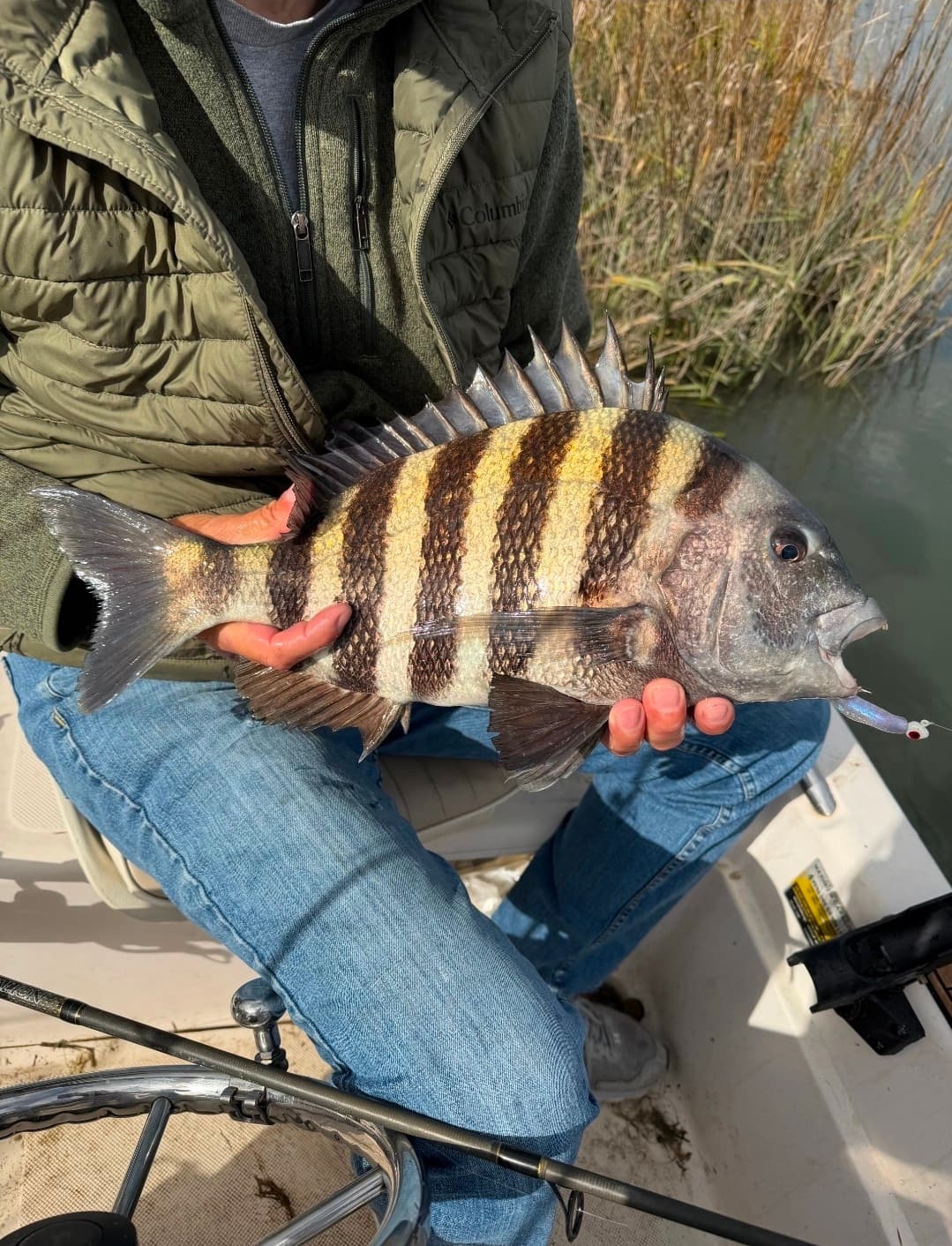 Definitely a mixed bag this morning on a very slow retrieve…Trout and Redfish and then a suprise to me Sheepshead all caught on artificials.