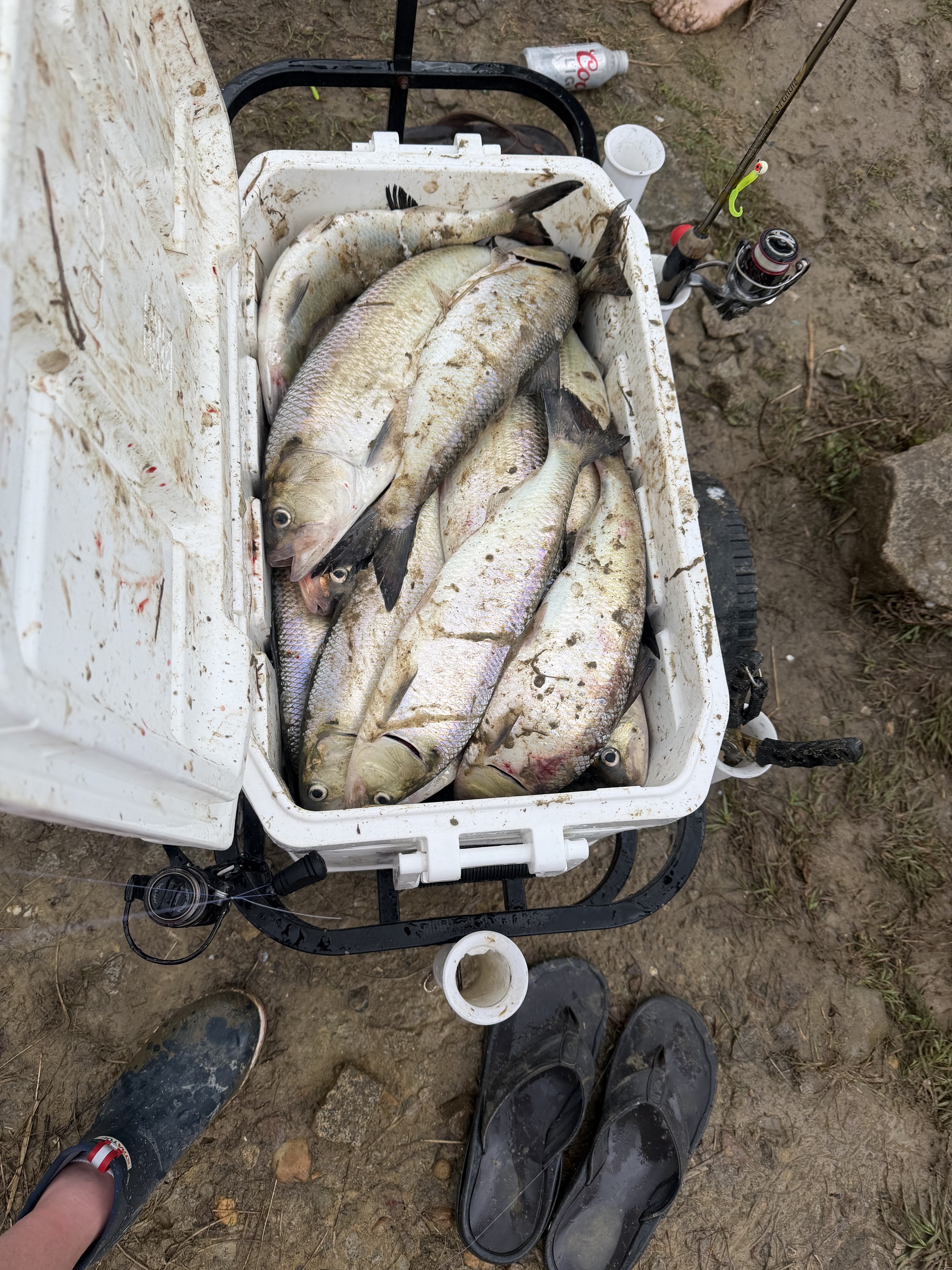 Had one of the best bites ever today. Myself, the world’s greatest, & his buddy went today. No current & we were getting them almost every cast. They turned the water on & it slowed for a few but cranked back up. Lightning & rain ran us off.