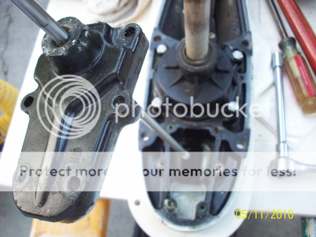 After close inspection of the shaft I noticed that some hard crusted salt corrosion had built up around the region where it goes up and down (or in and out, whatever your pleasure). I believe this crusty heterotopic build up on the shaft had caused deterioration of the two o-rings inside the shaft housing. I did not pressure test as recommended by Chris V. not sure how to do that exactly. Plan to change out water pump and several seals that I can get to without too much difficulty.