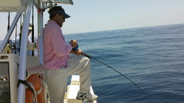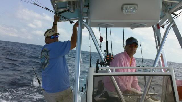Stayed with that line rather than going out deeper, and around 11:30 we got a couple gaffers and a skipjack tuna to work on the other box.