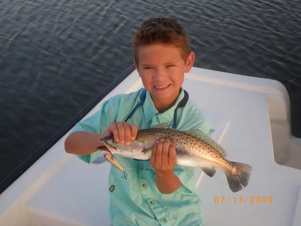 And the first: Rebel PopR If you blow up the pic you can see part of the plug. Popping plugs are easier for kids (young and old) to work than walking the dog with a stick bait.