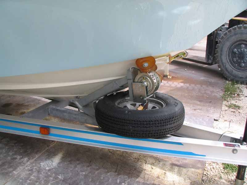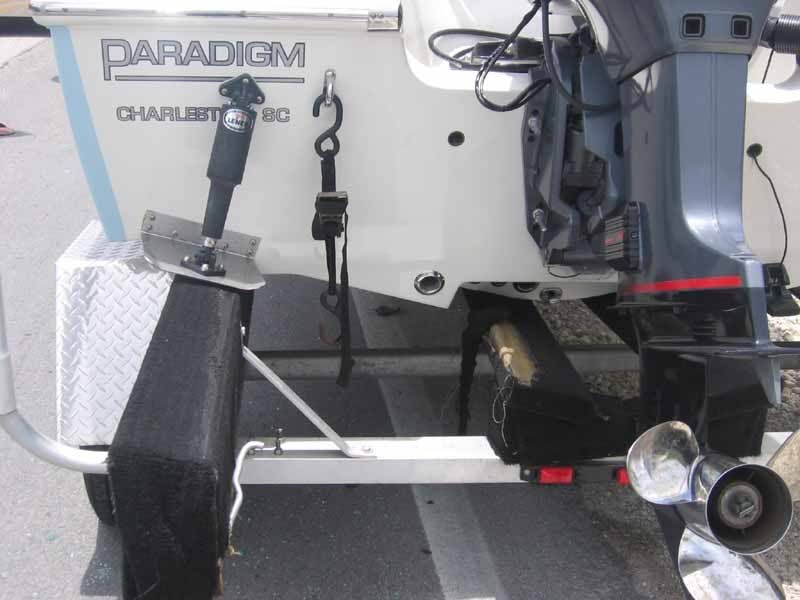 My dad and I came over the Cooper River Bridges one time when I was a kid pulling his 17-foot whaler on an easy roller trailer. On the downside of the bridge the boat crept forward on the rollers pushing the winch stand along with it. When we got to Remley’s Point ramp the rear rollers on the trailer where past the transom. We got some crabbers to help us pick the back of the boat up and slide it back over the top of the rollers so we could launch. That night when we got home my dad installed a 5/8-inch safety chain and hook to keep the boat from ever moving forward again. He drilled a hole through the 4-inch galvanized channel that the winch stand is mounted to about 2-feet aft of the stand. He then ran a 1/2-inch galvanized bolt through the channel and hooked the chain to the eyebolt with a shackel. A hook was installed on the other end of the chain that went through the bow eye. The chain was just the right length that it was tight when the boat was snugged to the bow roller with the winch. Never had another problem and he knew if he had to slam on brakes the boat was not coming forward.