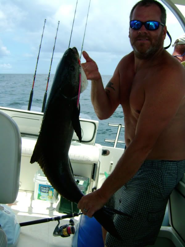 Capt Robbie has been wanting to put a cobia in the icebox all spring so we all slept in sat and finally gathered bait around 10 and headed to the nearshore reefs in search of some brown