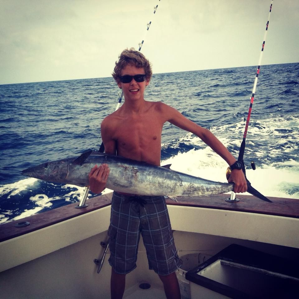 Lines in the water at 8:05 in 130 feet. Before we could finish setting all the lines out the 30 started peeling out line. My buddy grabbed the rod and brought in a nice Wahoo to start out the day.