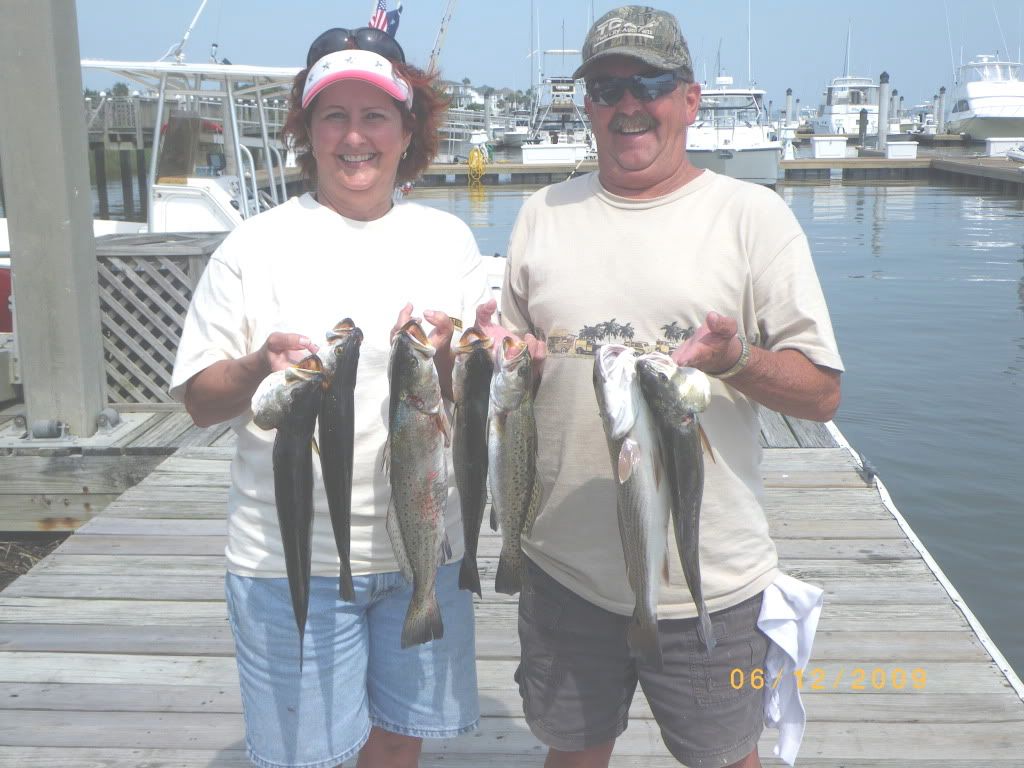 Finally, clearer water on the South side of Edisto. While it’s not an optimum clarity, it’s clear enough to target trout. And that’s just what Mary Sue, Richard, and Buddy did this AM on Trout Tricks and menhaden. Reds on Gulps. Mr. Bobo (Bob Reynolds)called, from his stop on the way back to Bennett’s Point, with eight trout in the cooler, and if he can catch…just kidding Mr. Bobo.