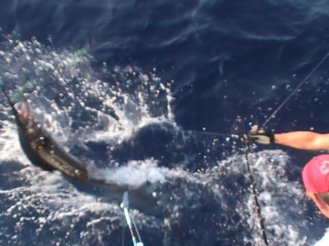 Went out straight out, put lines in at 300 feet, caught a sail within 15 minutes, one of the biggest sails I have ever seen here, had to chase it for about 1/2 hour before releasing it. Then the bite was gone til noon, picked up a couple dolphin on a great weed line. Had a real fun family group from Wyoming, Virginia, Atlanta, Tennessee and Charleston here, even though the bite was slow, they had a great time.