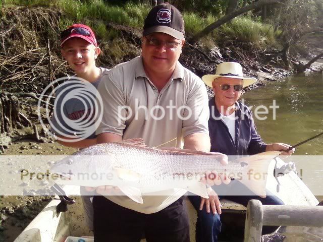 Dave started out our morning with a 31.5" Spottail. His son, Davis, showed him up with a 35.5" Spottail. Granddad, Jim, finished it off with a 31" Spottail. We hooked 2 others that broke off in the structure, but everyone caught a trophy fish. Caught on live Mud Minnows and cut Mullet. Tagged and released.