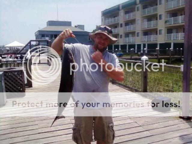 Took out Chad, and company this morning to go after Cobia, etc. Water temperature was about 80 degress, water clarity was clear. These guys were something else, and we had an absolute blast. Went 2 for 5 on Cobia. One Cobia was 41" about 27 lbs. Here’s the picture.