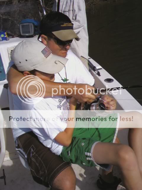 Son and Dad having fun. Trying to keep son from going overboard. Hooked up with a big one.