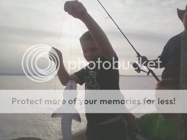 Took out James and family. Brian caught his first Shark while Luke caught his first Trout. They wound up with a mess of Whiting for supper. Had to cut the trip short because of rain, but those boys were pretty well tired of catching fish.