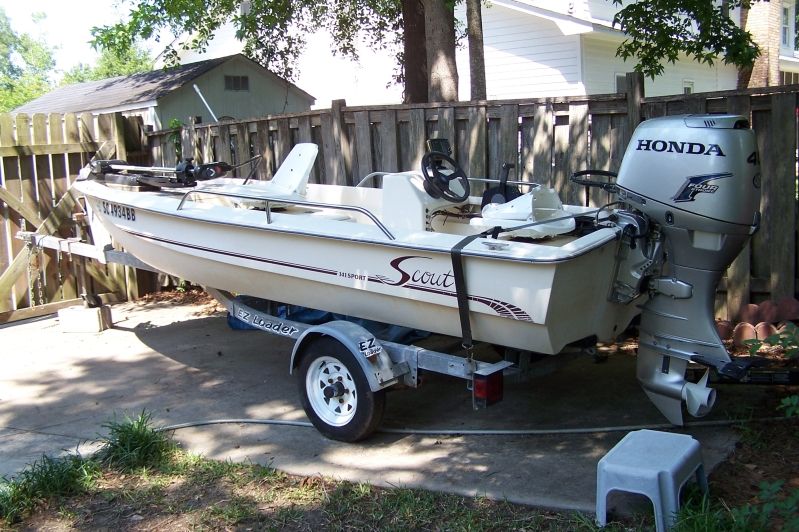 This young man has a 1996 14’ Scout with a 2008 40hp honda four stroke bought new in 2010 for sale. He is wanting to sell the boat to help with some schooling and is asking $5800 for it. I might be able to get a little off if anyone is interested. His # is 843-607-6648. Just tell him you heard about it from Billy. I’m having troble posting pics. They are all over 500 kb and can’t find out how to send from photo bucket also. Would someone be willing to post them for me?