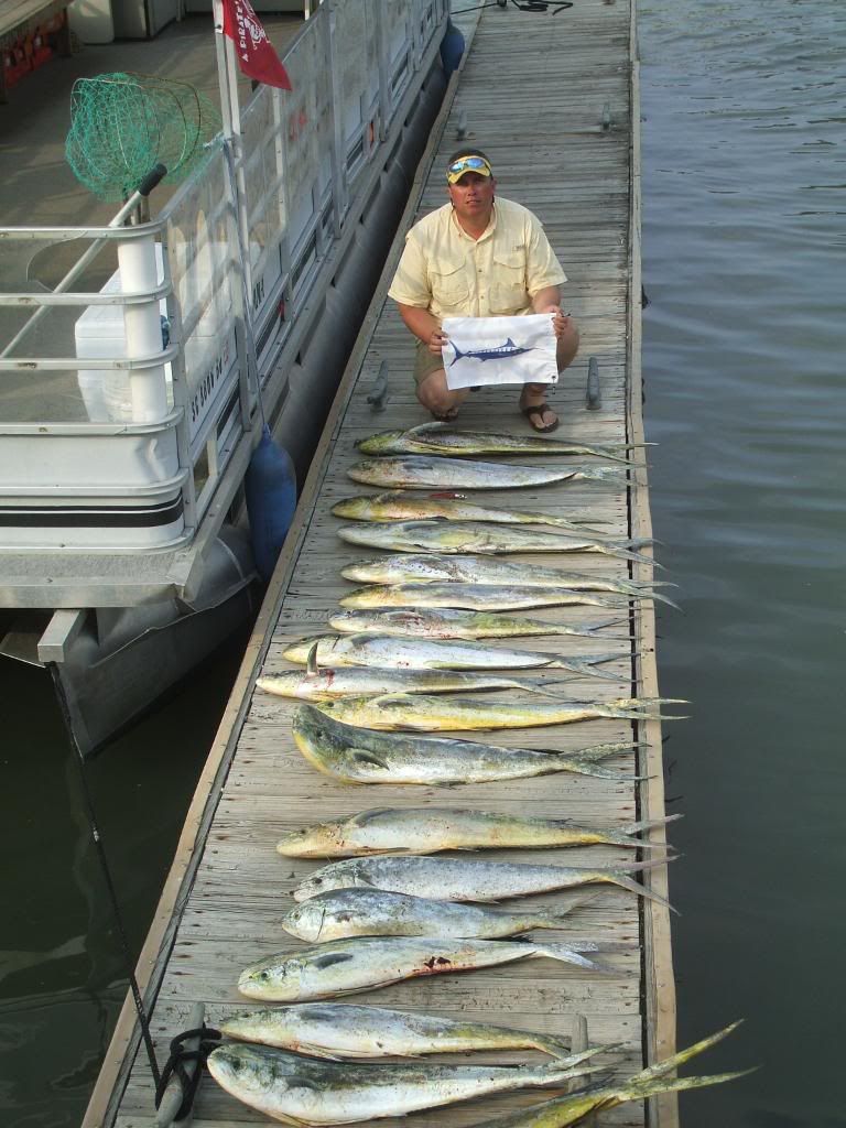 Fished out of Isle of Palms today. Left the dock at 0500 and were fishing by 0730. We fished the 400’s between 300 and 400 feet of water. The hot lure was everything. Ended the day with 20 dolphins and released a blue marlin. The blue hit a blue and white islander on the short rigger.