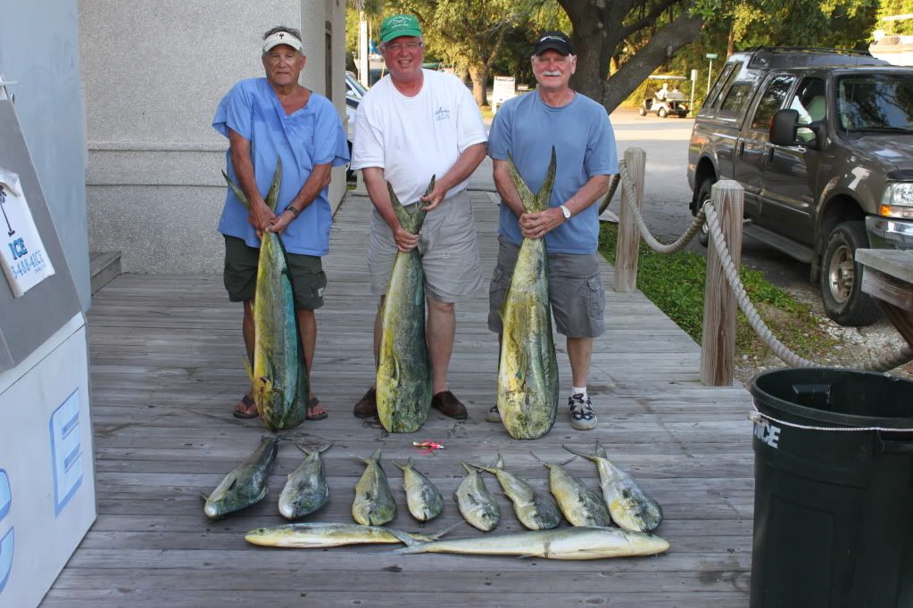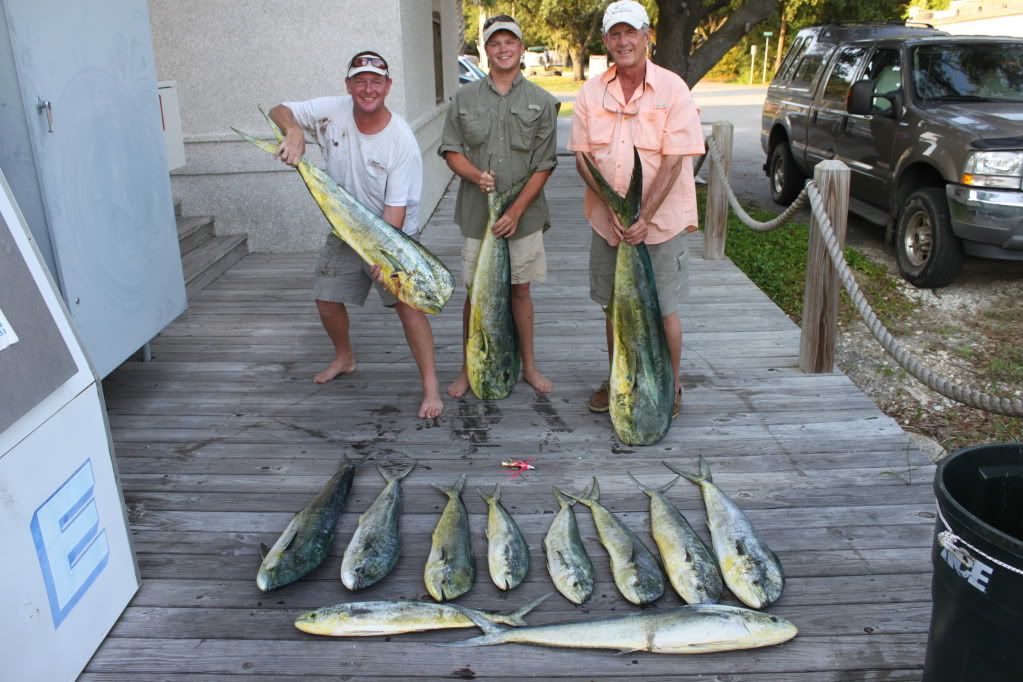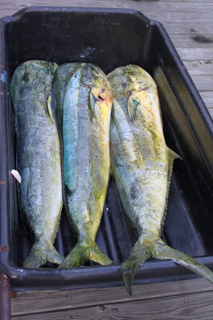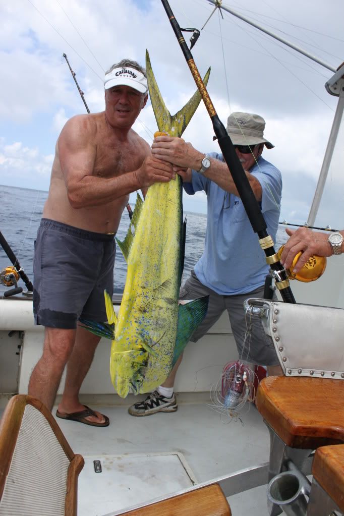 taking line. We managed to release 2 whites as the third eventually got off. Ended the day with 13 phins while missing another 5 phins “gaffers” hitting the ballyhoo very agressively. The largest gaffer in the box was 28lb. What a day for memory!! The day prior, Sunday, put 10 nice phins in the boat another great day on the “bluepond”. Great fun both days!! Pics will follow.
